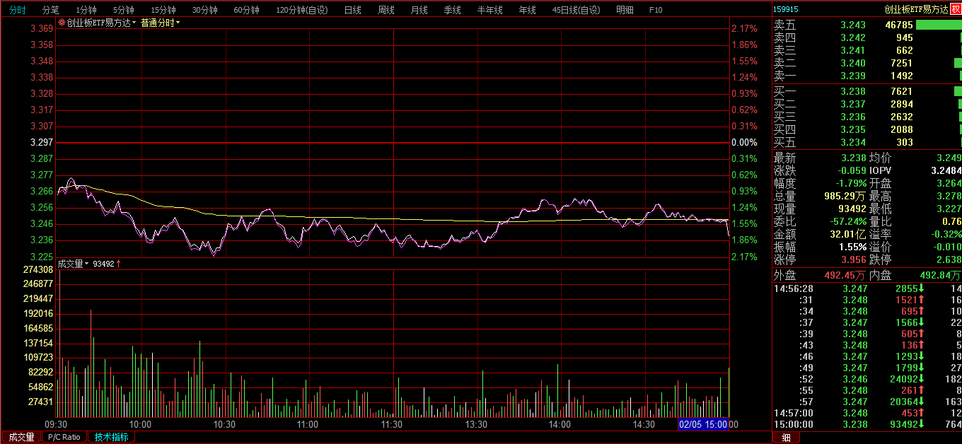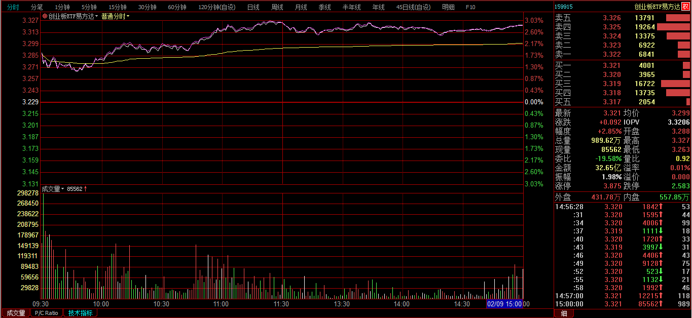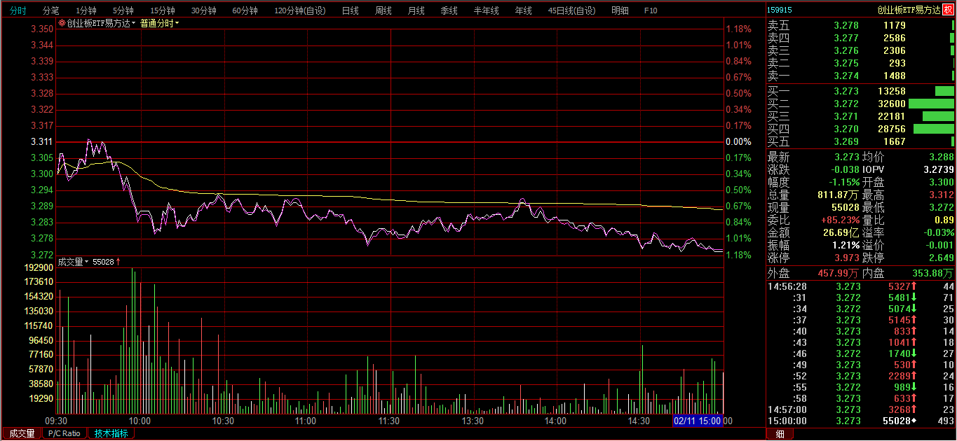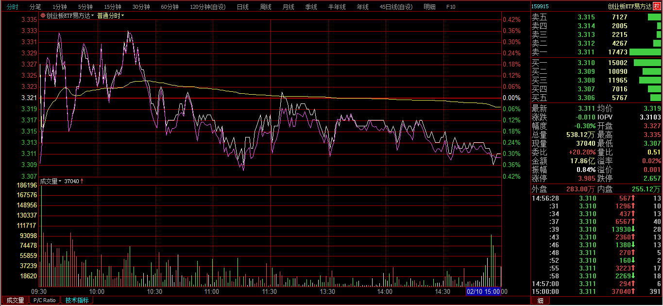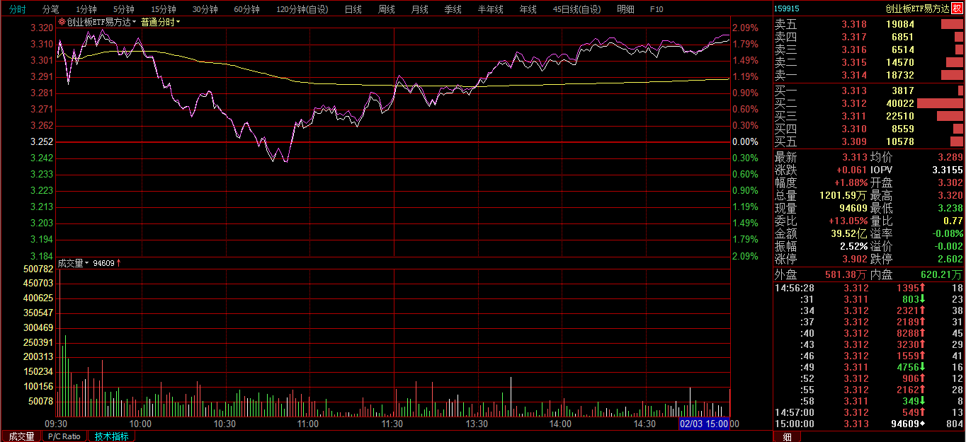 创业板ETF购2月3800分时图: