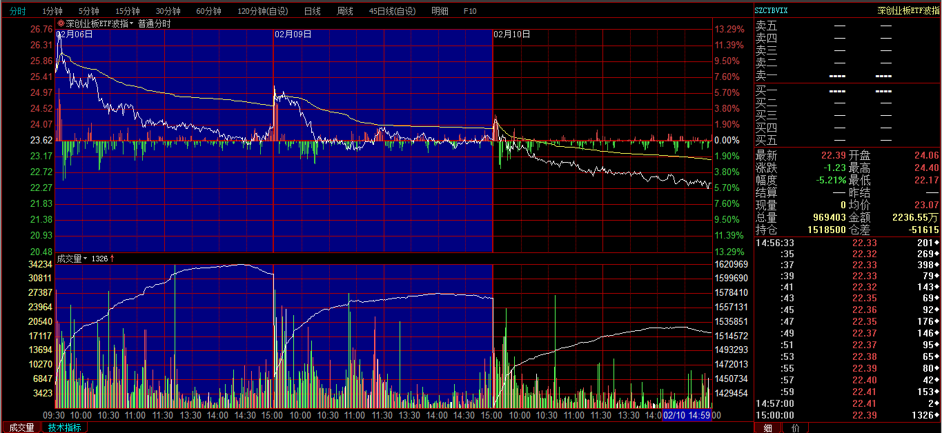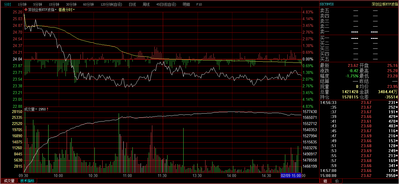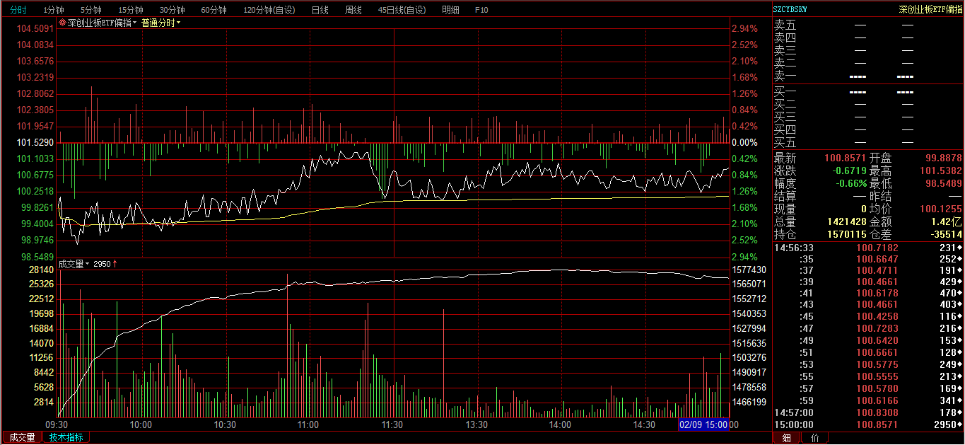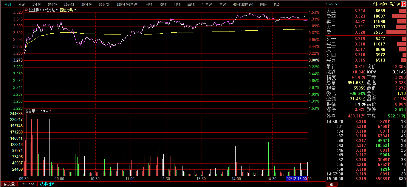 创业板ETF购2月3600分时图: