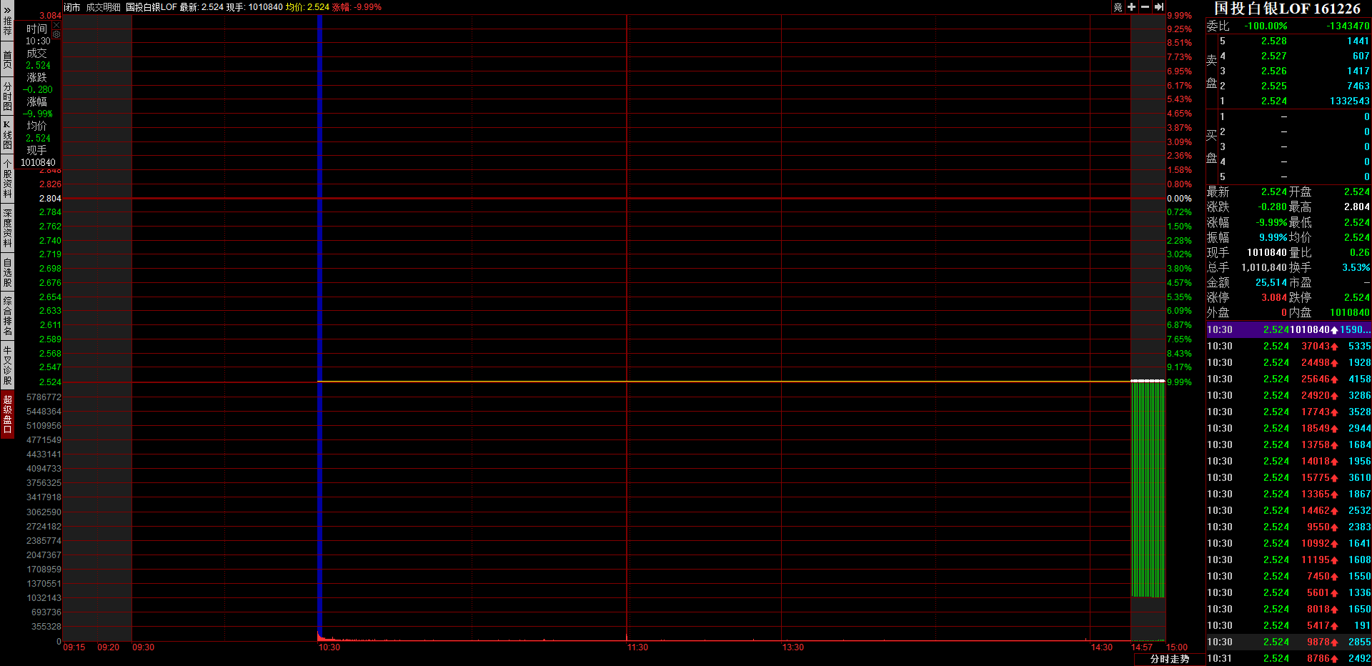 昨天25日,10:30瞄了一下白银LOF的开盘直播,从00开始,价格从0%开始,卖盘不少,托盘的力量不小,交易量大,交易即时价格线是缓慢斜向下的,犹如滑草板斜斜地滑下了草坡,直到50几秒才滑到底。并不是3秒就摁到跌停板而无反弹的,第一分钟好像成交了3个多亿。估计卖方多是有备而来的套利老手与新手,买方多是勇敢而简单的看涨者。这简直就是一场高维度的投资人对低维度投资人的单方面大碾压