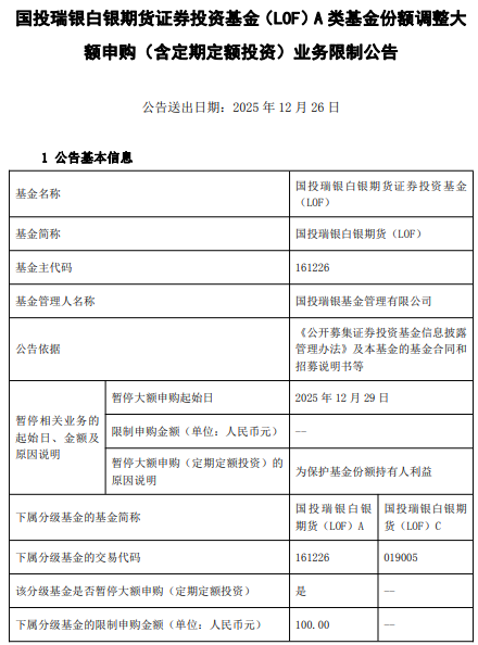 国投白银出利好了——下周一限购100元