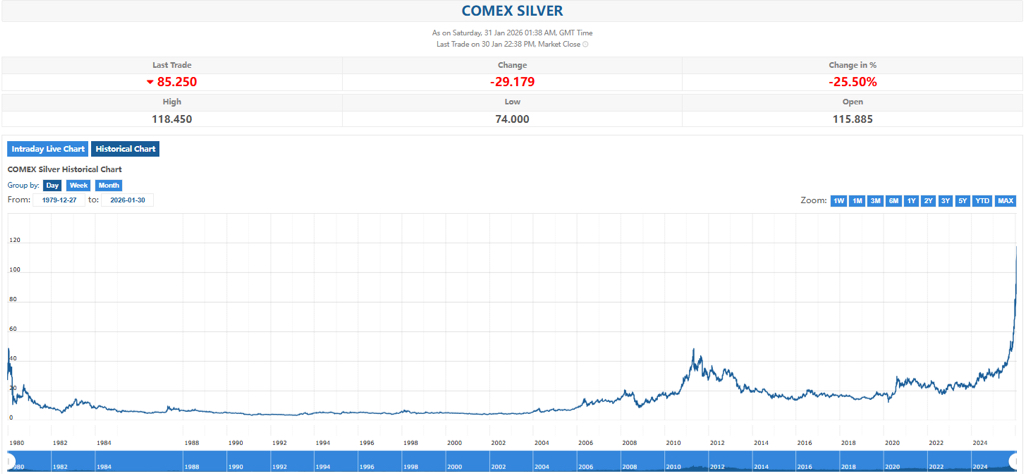 历史背景与波动性: 从更长周期看,金银比的长期平均值约为33:1,但1978年至2008年间均值扩大至60:1,近年来已接近80:1;比值突破80:1通常对应全球性危机事件,而低于50:1则可能出现在经济繁荣期,反映白银的工业需求驱动。