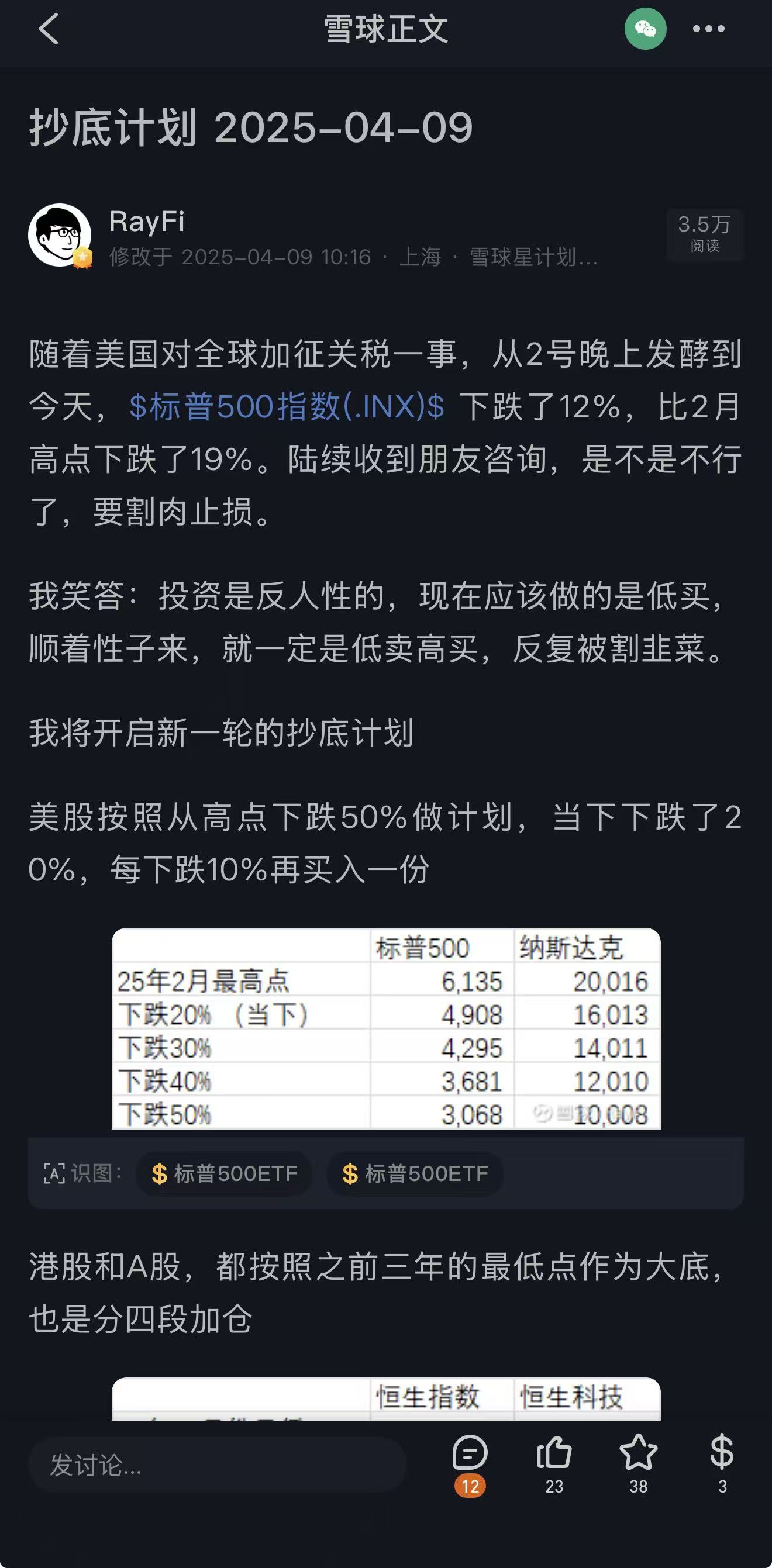 2025年4月,特朗普关税大乱斗,美股大跌,我喊单两次,并制定了四步加仓计划,虽然只加了一次价格就回去了,但也是低位抄了点底。
