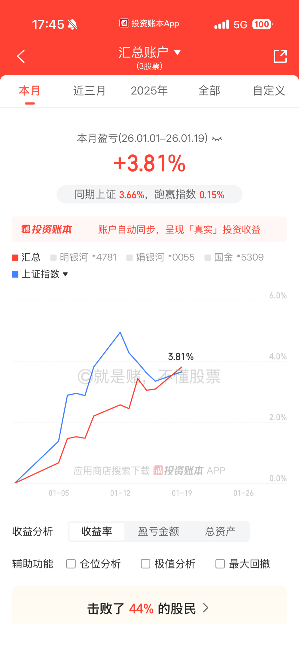 这一波踏空已经麻了,基本跑输所有指数。2.54%,收益垫底了,思路没跟上啊,熊市思维,算球了,就这样吧。