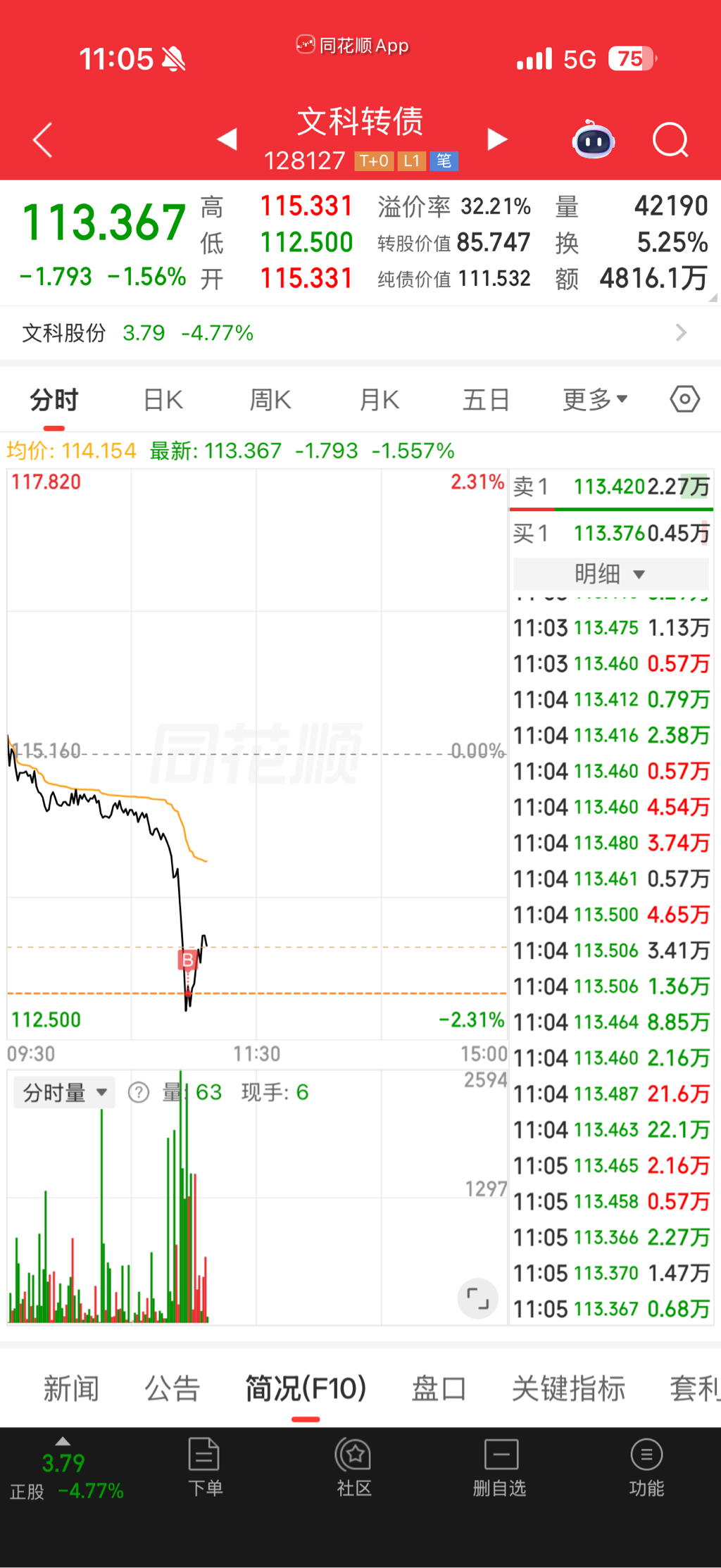 50%的转债仓位,其中冀东转债持有不少,基本算现金,文科之类的又很弱,难赚钱了,仓位我也不敢降了,除非文科涨到130以上了。