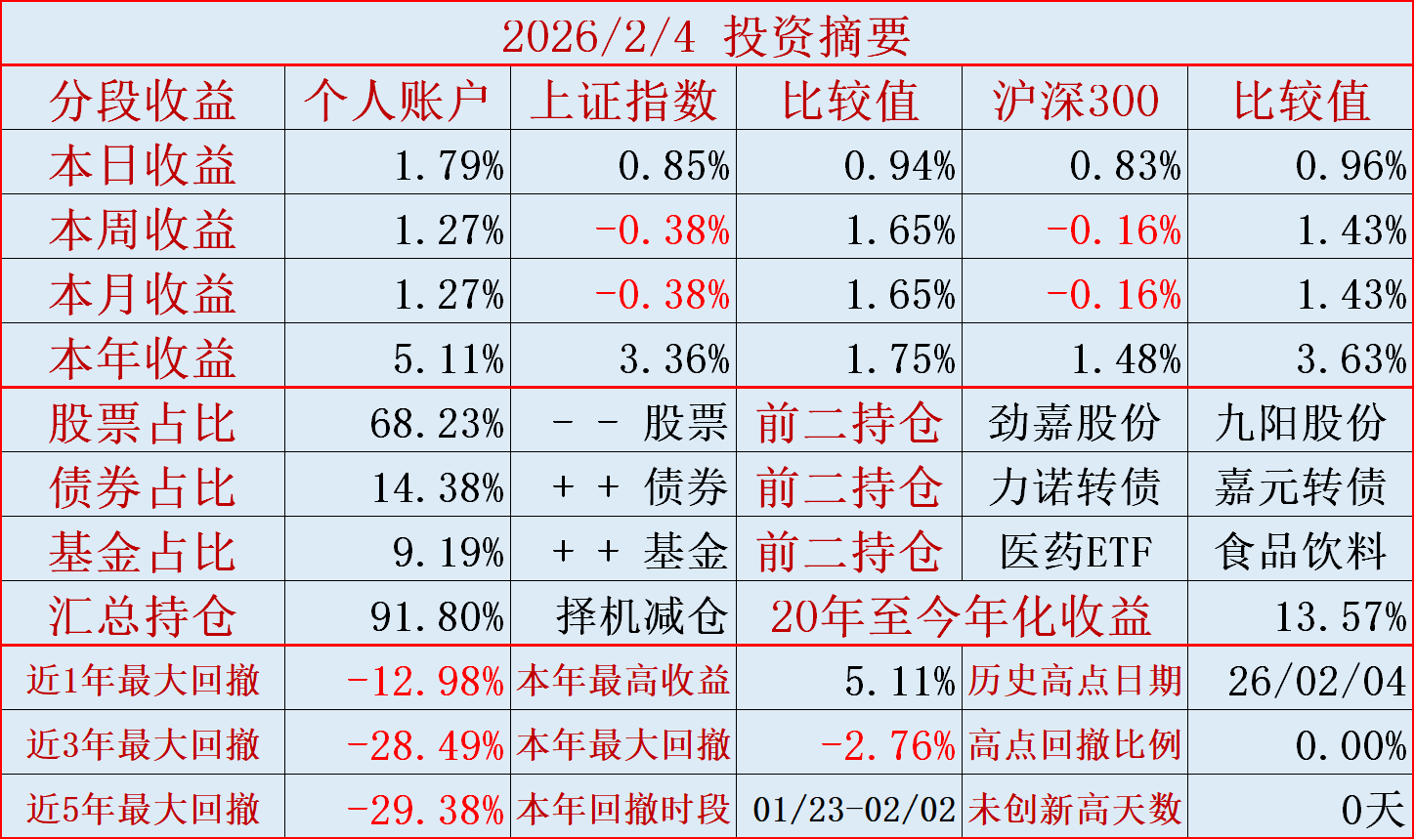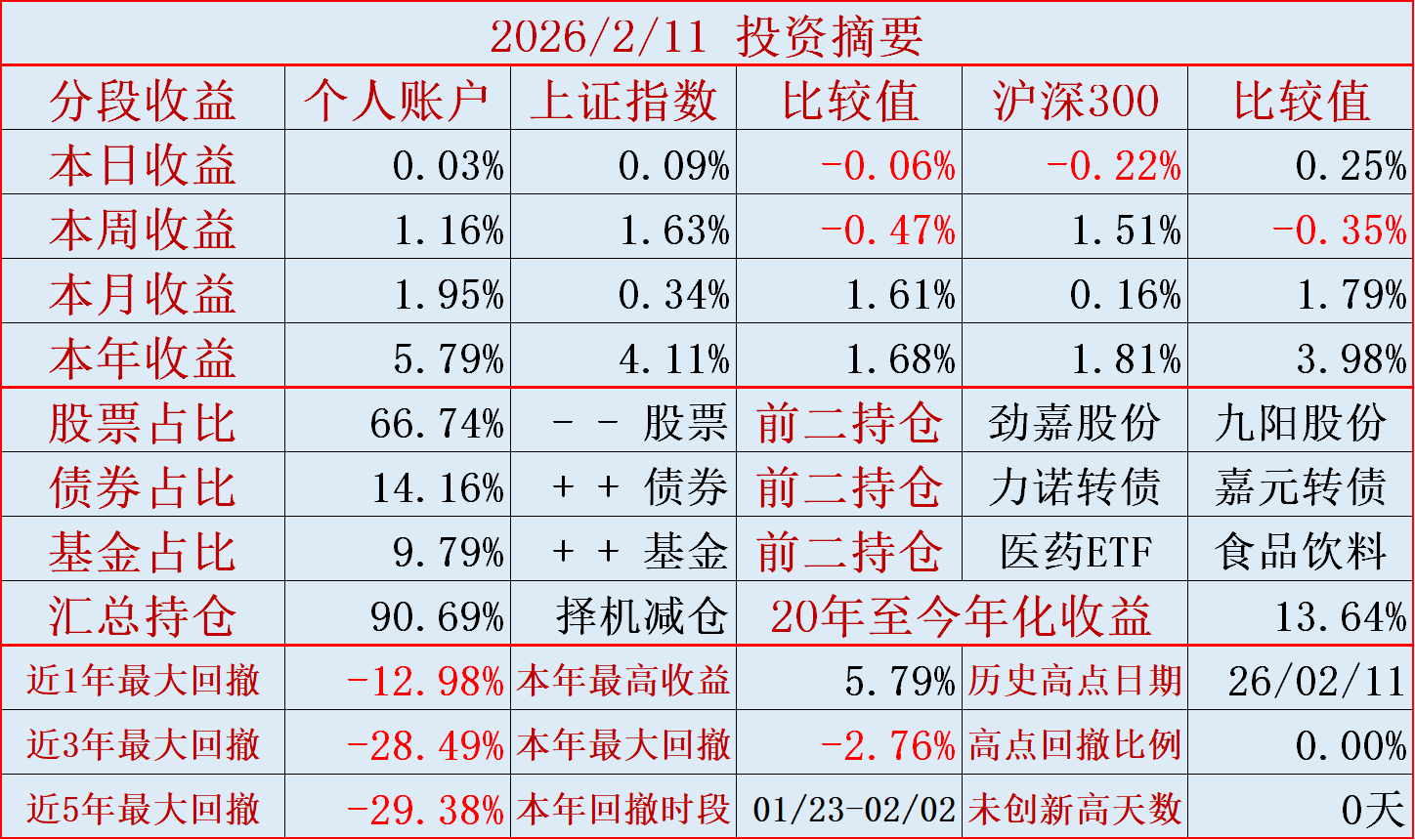 持仓的盘江股份涨停,超越指数部分收益。(前天,劲嘉股份跌停,滞后指数部分收益。)