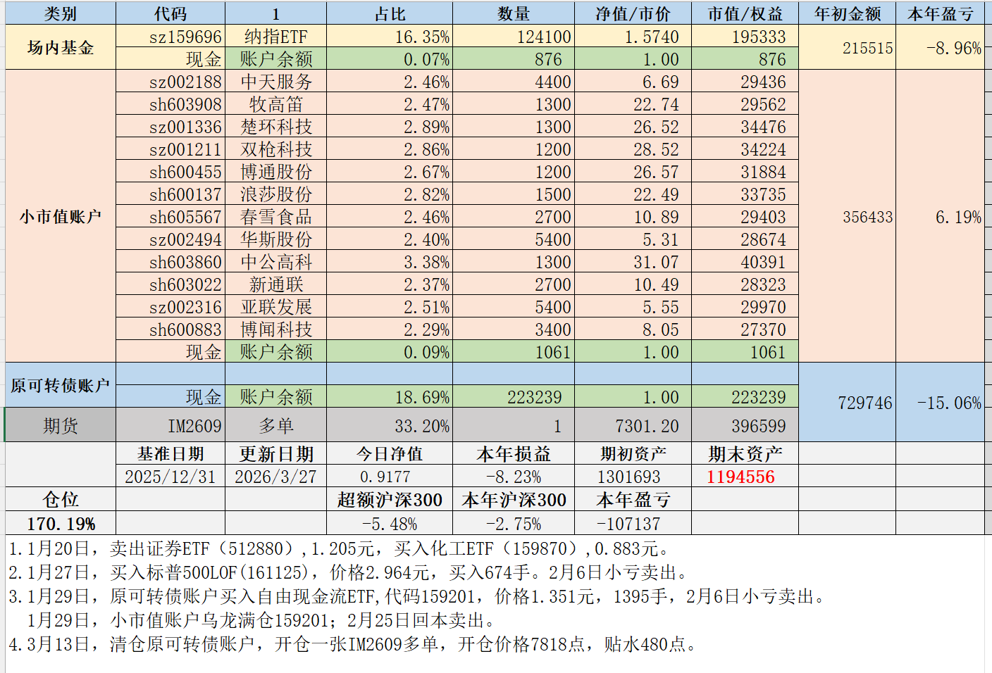 1.小市值账户继续独立封闭运行,择机加仓不再减仓。