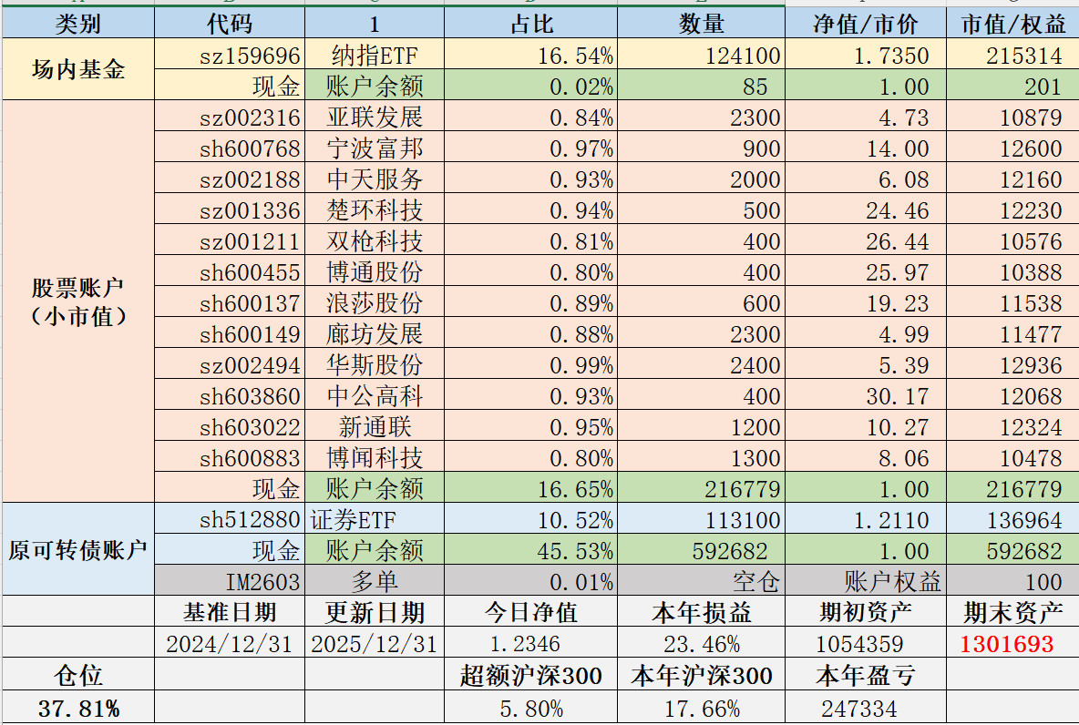 回顾2025年,没有把握住牛市,基本低仓位运行,错失回本机会。