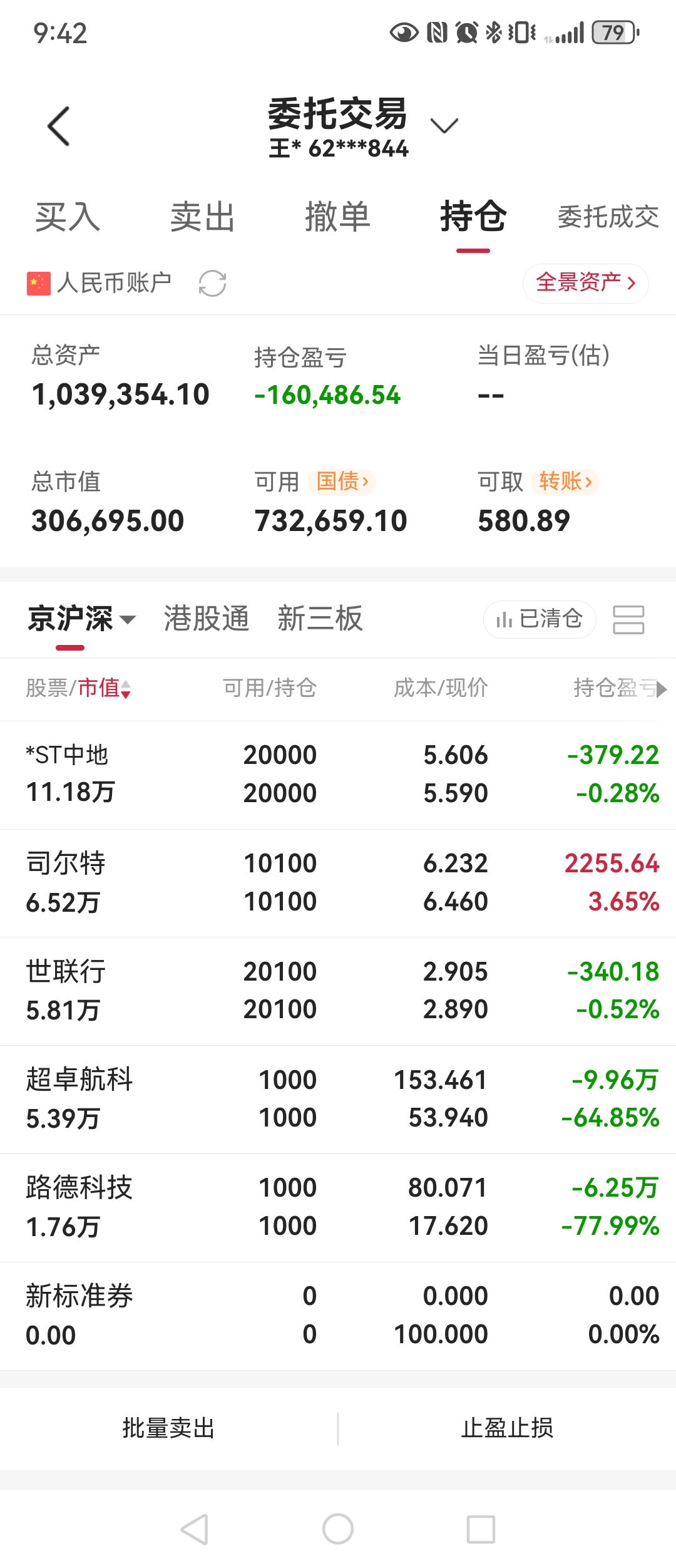 错过绿德科技加仓,反倒加仓超卓航科,乌龙。加了一点st中地。