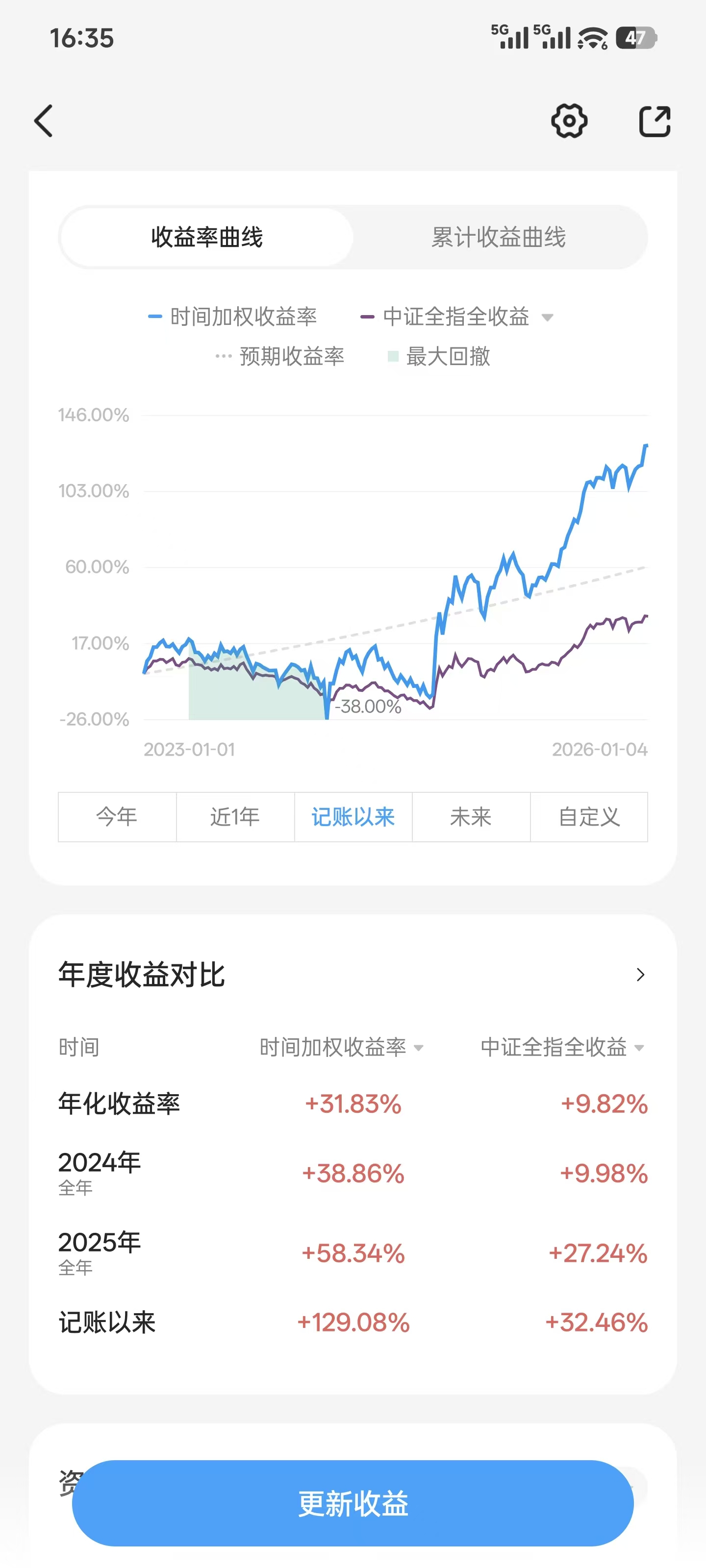 2025年初的时候,给自己定下了3个目标,今天回头看,都实现了。一、3月30日,仙桃马拉松顺利完赛。尽管在32公里处旧伤复发,最后10公里是一瘸一拐走下来的,5:22的成绩也并不完美,但是终归的顺利完赛。二、10月底顺利通过法考。客观题214分,主观题130分,算是高分过关,没有辜负1200个小时的学习时光。三、年终投资收益率为58.34%,绝对金额与收益率均创历史新高。年初的愿望是赚到100W,结果大大地超额完成任务。加上有一笔场外资金入账,竟然提前4年实现了当初的梦想。
