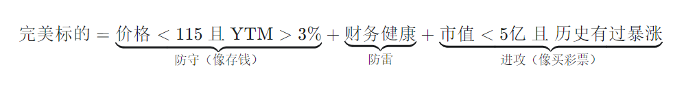 - 从115元买入,到150元卖出,收益率 30%+。对于一笔原本预期赚3.5%利息的“保本投资”,这已经是10倍的超额惊喜。 * **不吃鱼尾**:当价格到了160元,YTM已经变成了大幅负值,防守属性消失,变成了纯粹的博傻。这时候卖出,符合“低风险”的初心。