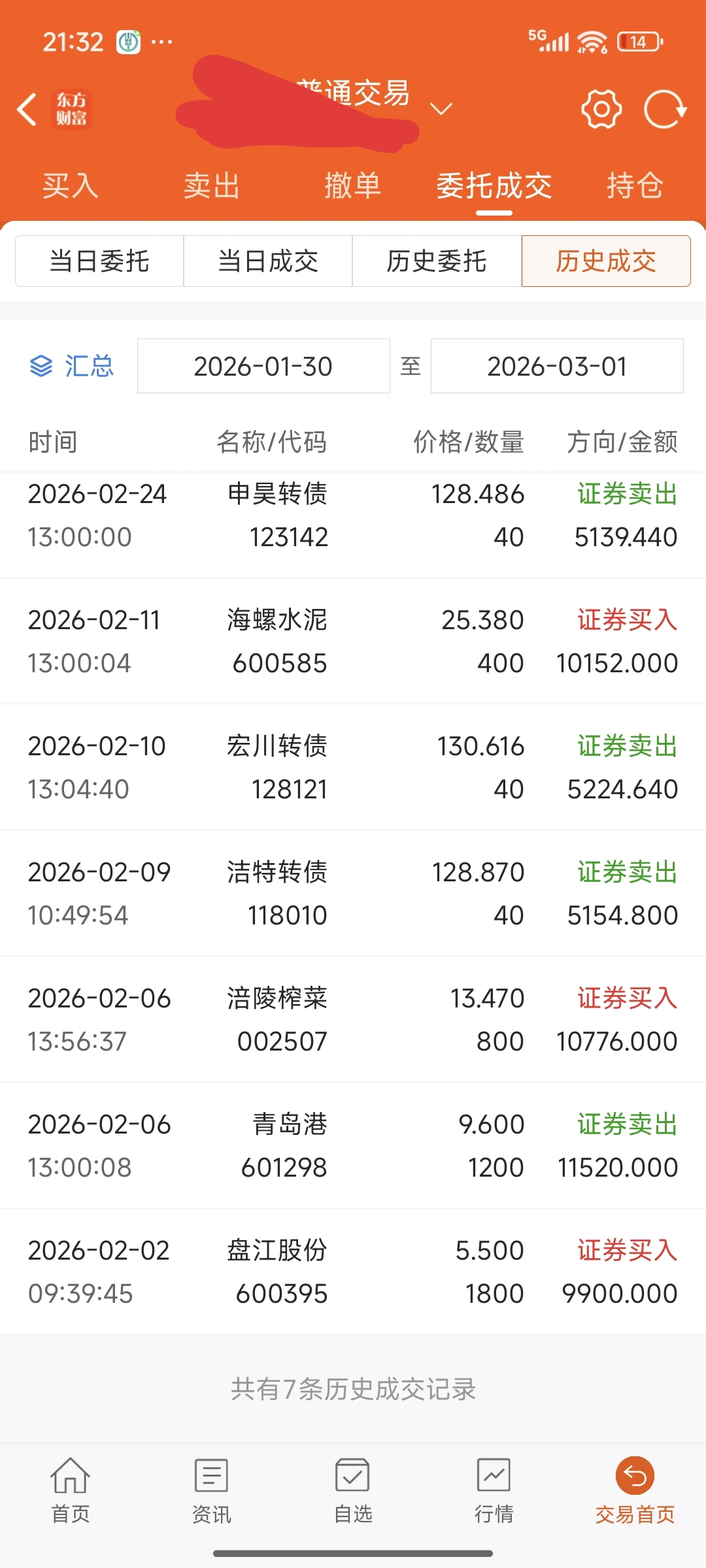 2.本月交易。一是股票。本月买入盘江 1800 股,榨菜 800 股,海螺 400 股,清仓卖出青岛港 。买入是为了吃股息,如果稳定增长型股票一年内涨幅达到百分之三十以上,会考虑清仓。如果一年内跌幅达到百分之五十以上,会考虑等额补仓。