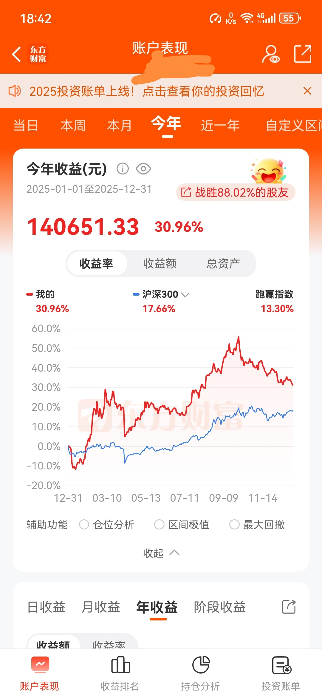 总之,2026 年继续努力加油,希望早日到 100 个,目前差 30 多个。希望 2026 年的收益率 15% 吧,随口说的。希望新的一年,家人健健康康,平平安安,开开心心,其他的接着顺其自然吧!