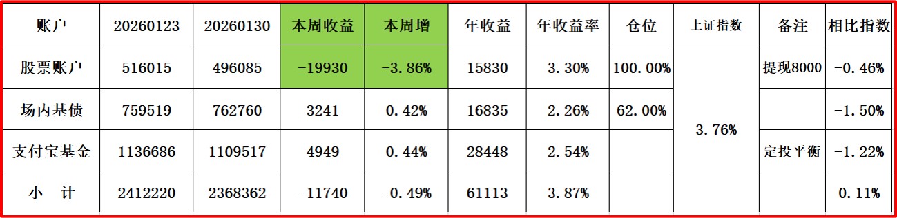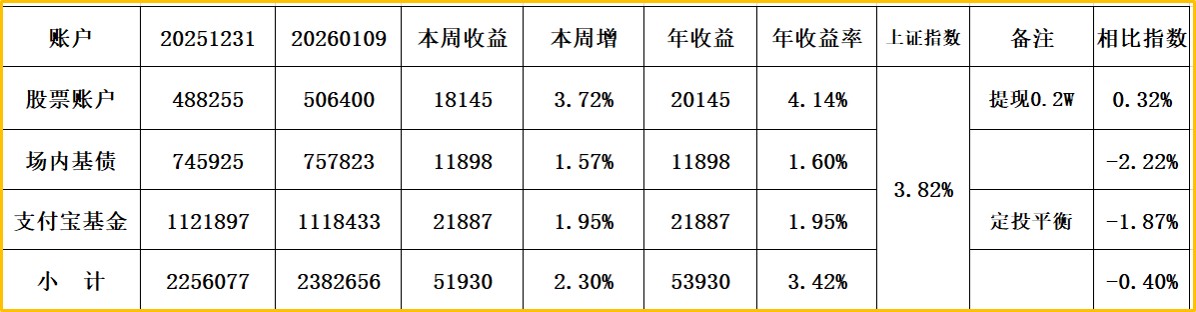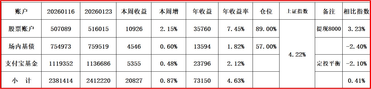 投资周报(20260116-20260123) 沪指收4136,涨幅4.22%