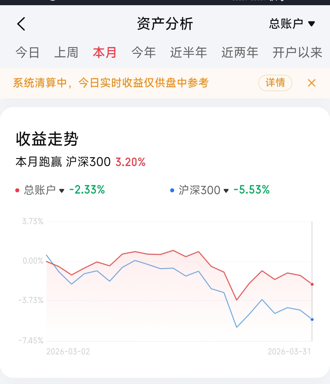 你的逻辑没毛病,目前,我个人也倾向于再翻上去的可能性不大。嗯嗯,因为前面说过,做空的时候是1/3的等效市值仓位,怕被随时拉爆,目前属于仓位可控的阶段,只要大盘指数连续3天站上半年线,我就开始割掉买沽的仓位,变成双卖。