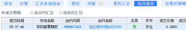 在其它指数已经大幅下跌10%以后,创业板指数可能补跌,所以我这一轮也曾经做空过。3月31日在3.2元一线卖购。不过到4月3日就获利平仓了,对应价格在3.15元。当时平仓就以技术指标为信号,并不知道后面会暴涨。