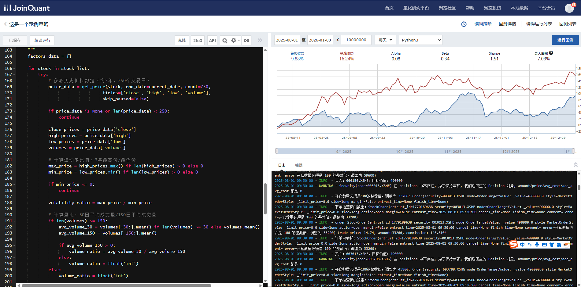 跟随大佬抄作业全A价值策略:基于高股息率,低PB和低换手率三个因子等权重做排名回测低波动低量比:低波动<2作为筛选,低量比作为排名两个回测结果好像都不太理想,不知道是不是具体参数没搞对?我基本不调参,都是20、60之类的参数,避免拟合。你很有可能是策略没理解对。我的两个回测是这样的: