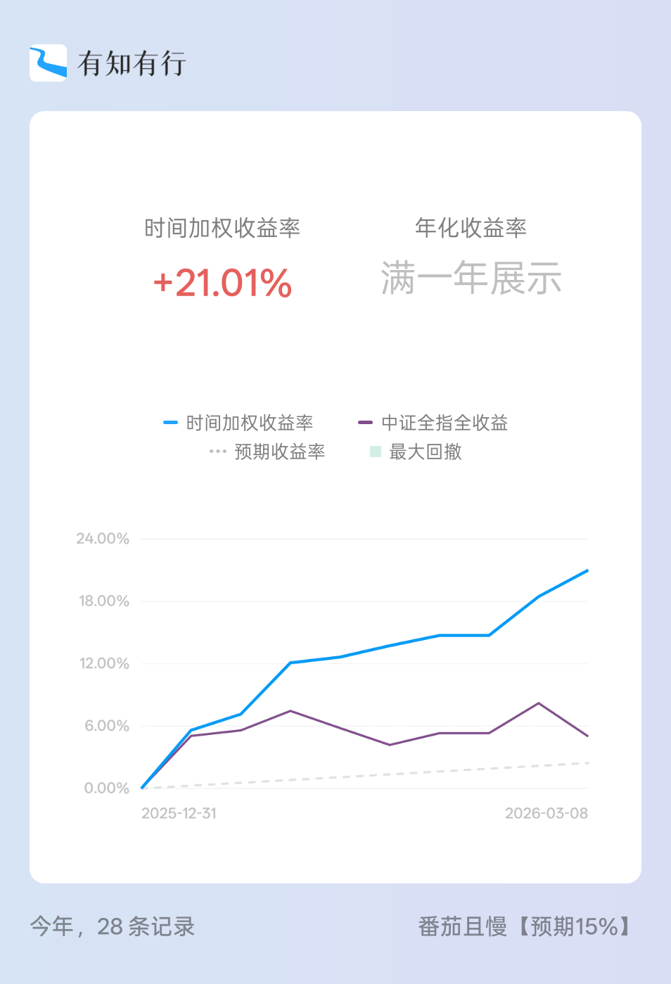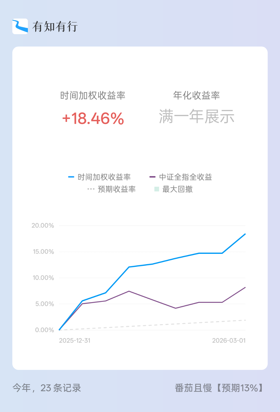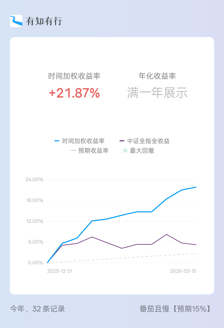 本周收盘,番茄组合2026年收益率:14.7%【当年最高14.7%、最低0%、最大回撤0%】。
