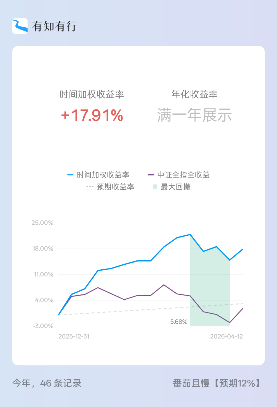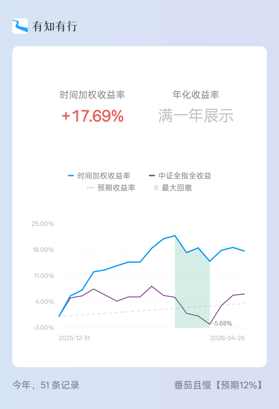 我用有知有行记了一个账,26年收益曲线如下,总体上超出我的投资预期。