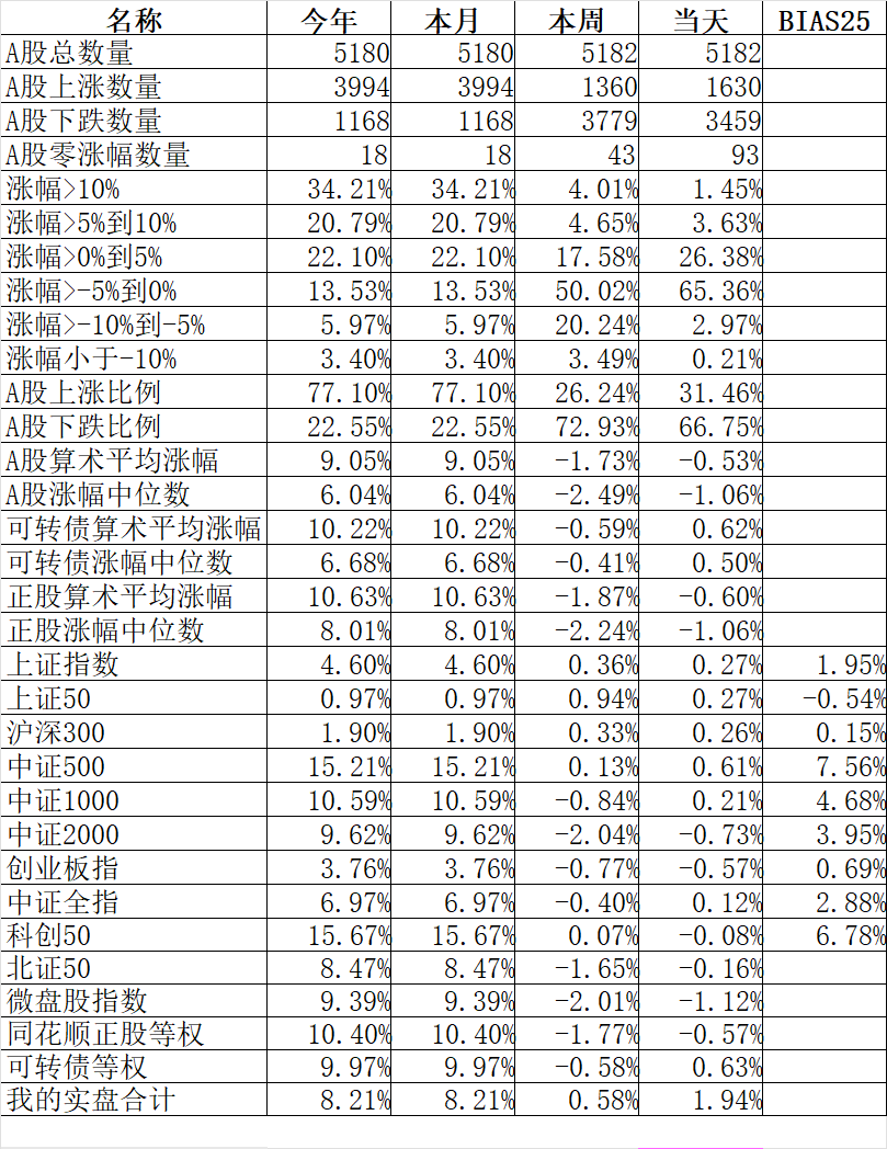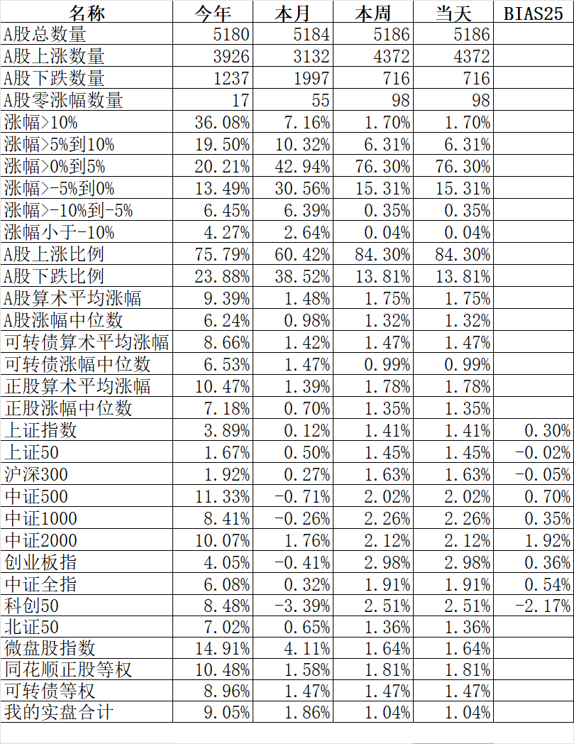 373只个股平均上涨1.47%,对应正股平均上涨1.78%。我的主仓20只可转债平均上涨1.01%,对应正股平均上涨1.98%。