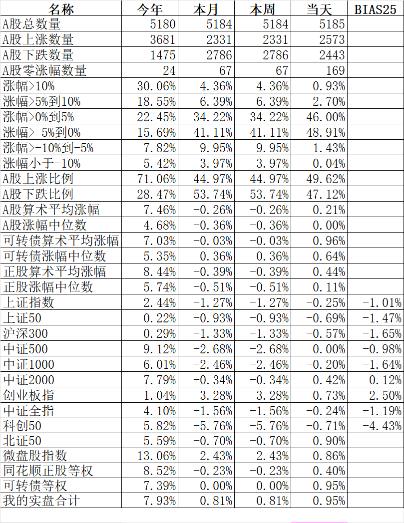 今天没有操作,最终账户合计实际上涨0.25%,盘中创了历史新高,下午一路下滑到收盘离开历史新高还有0.21%。