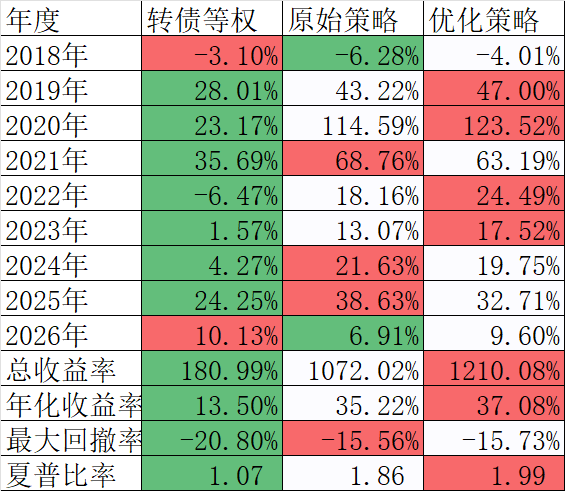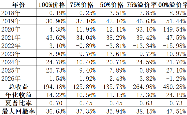 先解释一下什么叫可转债的阈值,绝大部分可转债的强赎条件,都是在连续30个交易日里有15个交易日正股的收盘价不低于转股价的130%。那么也就是说如果溢价率为0,可转债的价格就是从100元上涨到130元,所以价格高于130元后被强赎的可能性越来越大,再加上强者恒强,过强转弱,价格高的可转债虽然在牛市上涨的概率大,但下跌的风险也不小,所以在可转债的轮动中要限制价格,阈值就是这个限制值,在过去熊多牛少的时候,我把它设置在131元,这几年特别是2022年熊市年也取得正收益说明了这个低阈值的合理性。