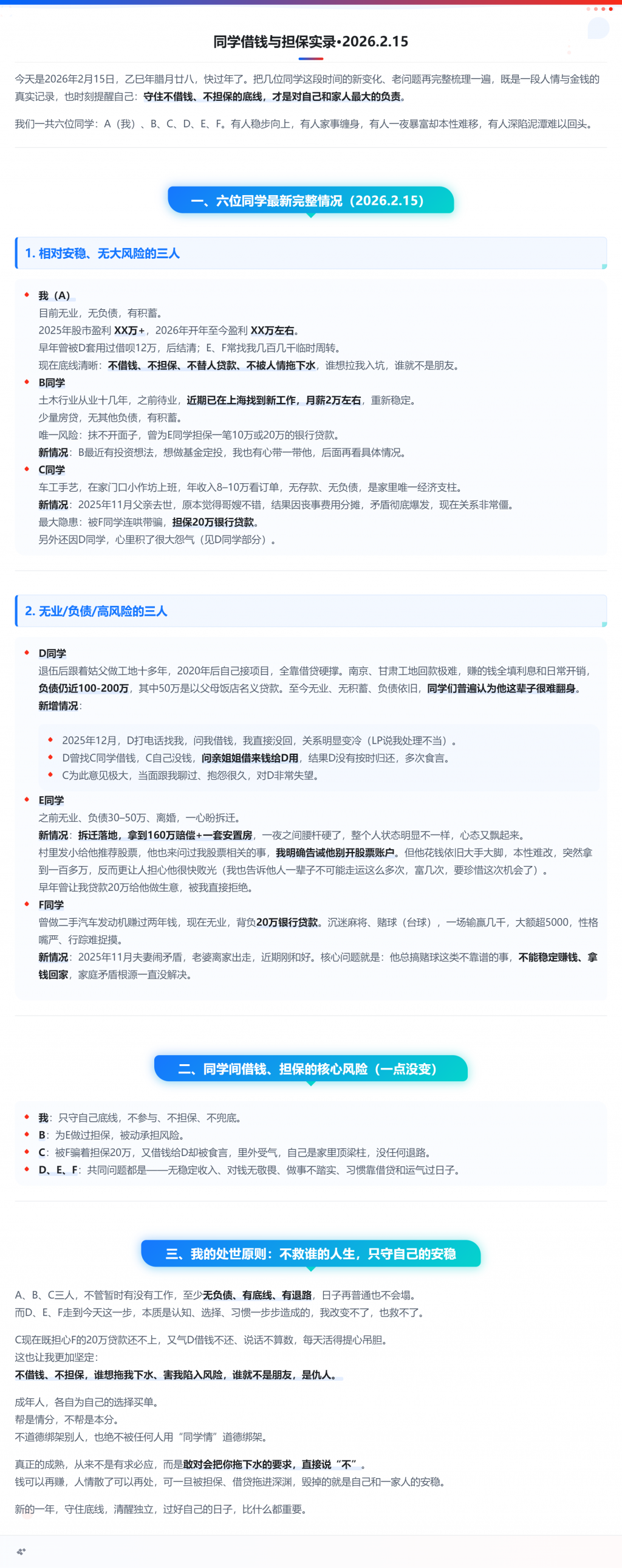 再分享一个我们当地帮人担保的人因为贷款人躺平,导致她被执行的事情,现在进行时,热乎的。她也不老实,很多事情没实说,只是想放大影响,胳膊拗不过大腿的,最终自己认倒霉,把自己房子搭里面,把自己和家庭给毁了。不借钱不担保是底线,如若借 注意额度。