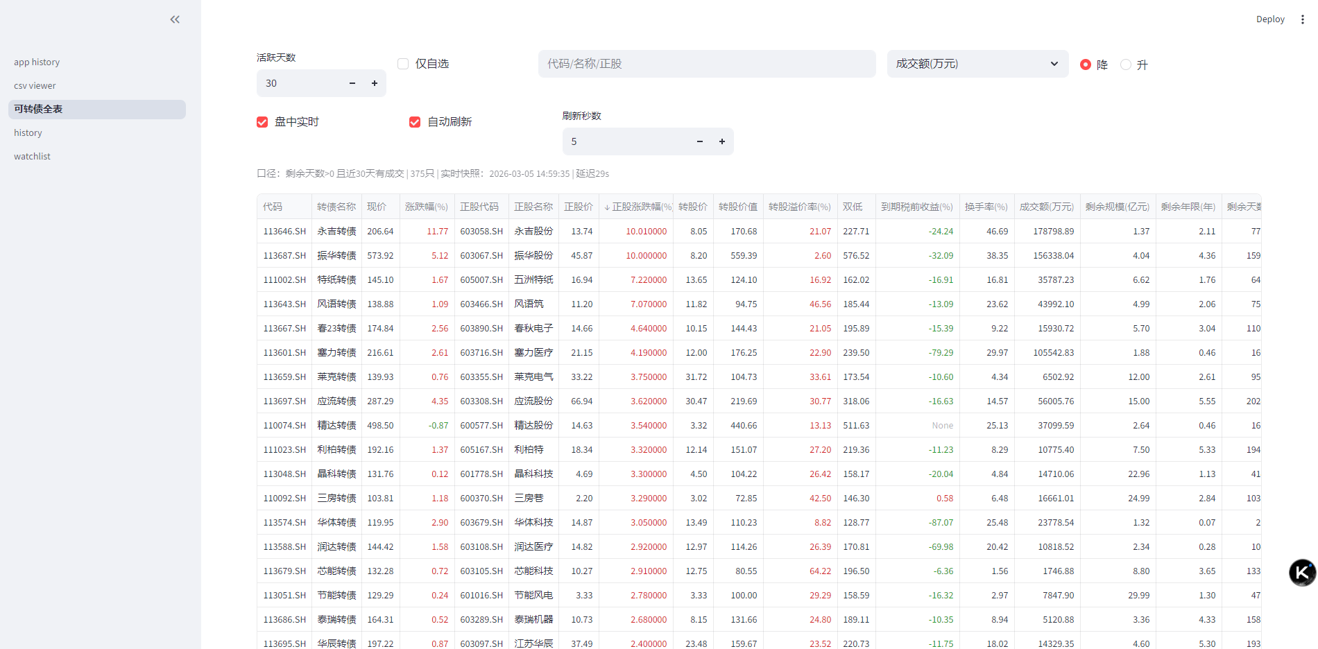 最近在用AI写个网站看板,可以看转债的数据 历史+实时。