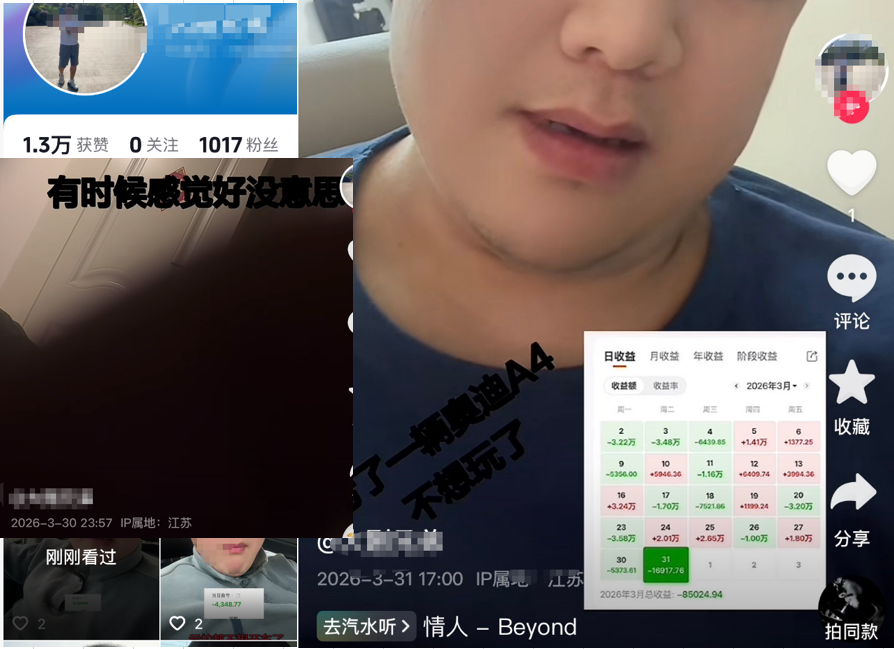 我关注的一个本地股友死在了三月,没坚持到4月,我看他的抖音没有股票的更新了,都是接娃送娃。自有20,30本金,又借了几十万进来赌,结局可想而知。房贷、家庭开支其实已经够压的一个男人喘不过气了,失业了想靠股市翻身,但是能力、时间、期望不能错配。