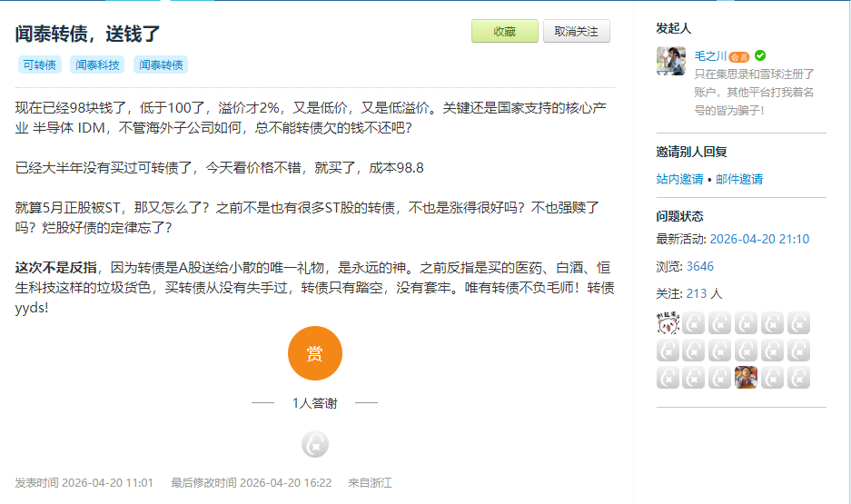 最近最热闹的无过闻泰转债了,去年安世危机的时候,我博短赚了几千块钱,后来第一重仓进去过,对它期望太高,130元的时候都没走,后来就是一路跌。在3月5号我就清仓走了,不跟猪摔跤了,错失很多机会成本,亏钱...