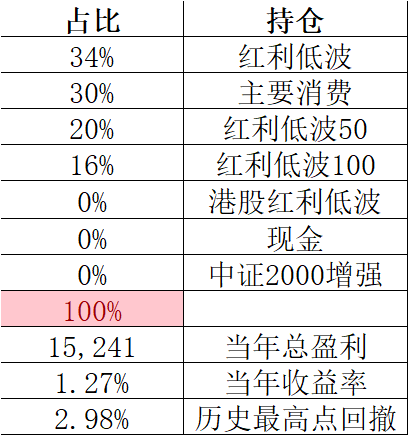红利低波一如既往地弱。今年目前盈利刚刚过1%,也就差不多是分红的钱,我只是设置了分红再投资。少是少了点,但也满意了,既然选择了这个风格,就不能既要又要还要。