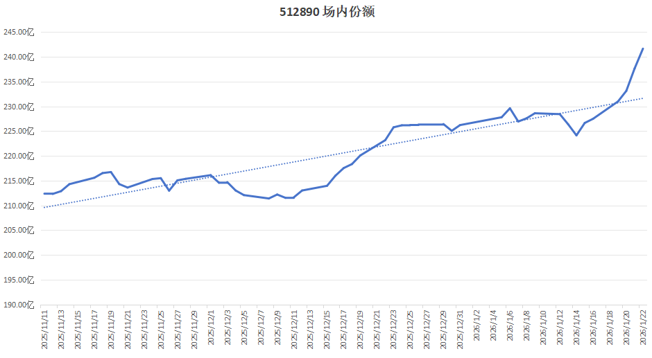 2、记录一下 512890即将突破230亿份额,新秀563020也能站上40亿;