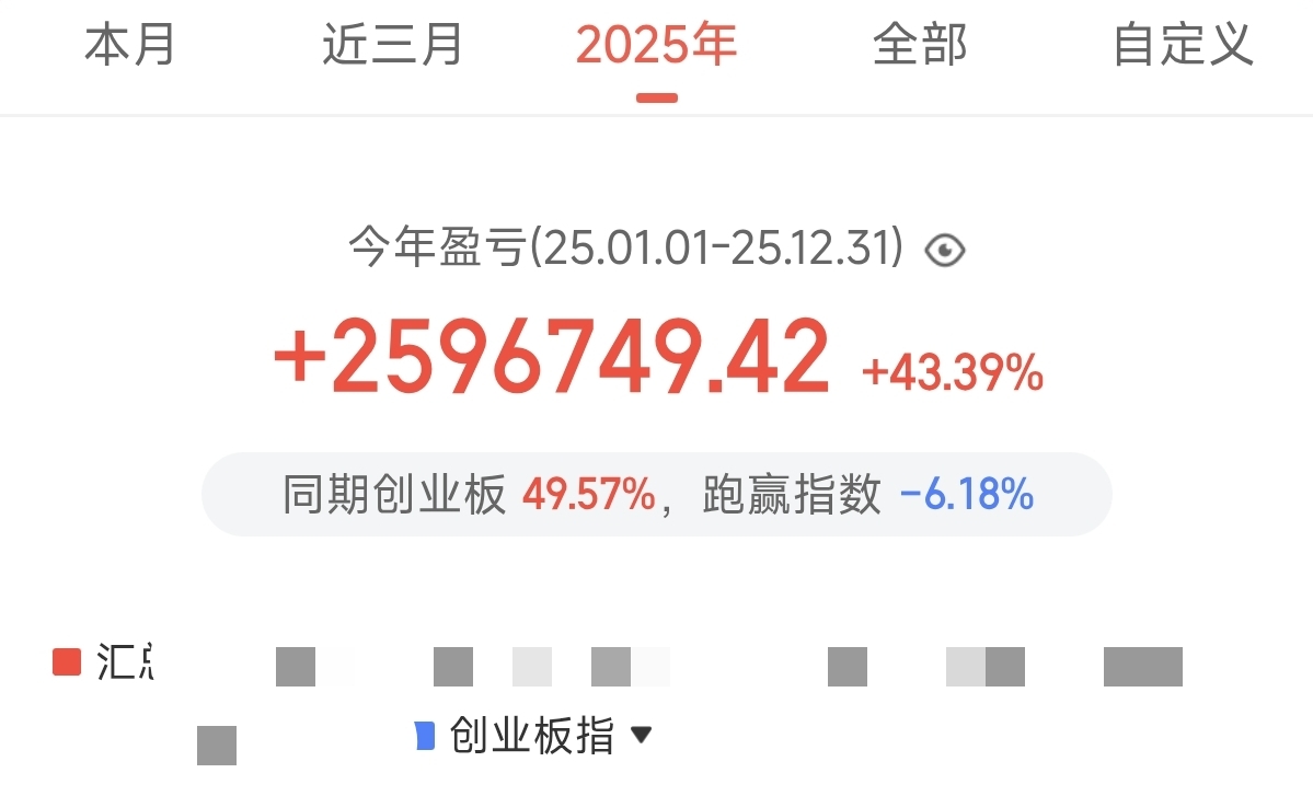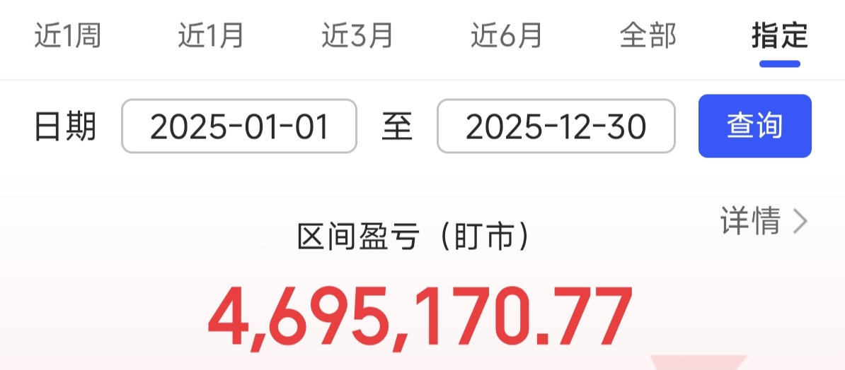 两个期货账户+股票,2025年总收益1000W。意外开心