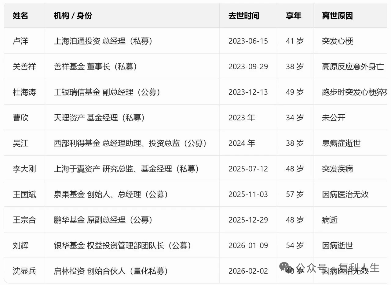 要学会与自己和解。钱是赚不够的,操作也不可能尽善尽美。除了投资的目标外,我们也应该把健康和生活摆在更重要的位置。实际上,若一个投资者不能做到长寿,他就不能算是一位伟大的投资者。因为复利需要时间来发酵,年纪不到,哪怕能力再高,赚到的资产也是有限的。如果你持续投资到90岁,你就是大师。投资人患得患失,英年早逝的多: