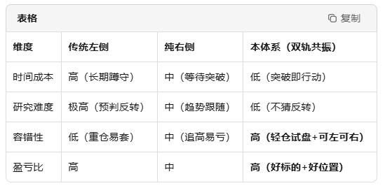总结:用右侧交易的精准入场点,去捕捉具备左侧价值的优质标的;对了顺势加仓,错了转为左侧,始终掌握主动权。