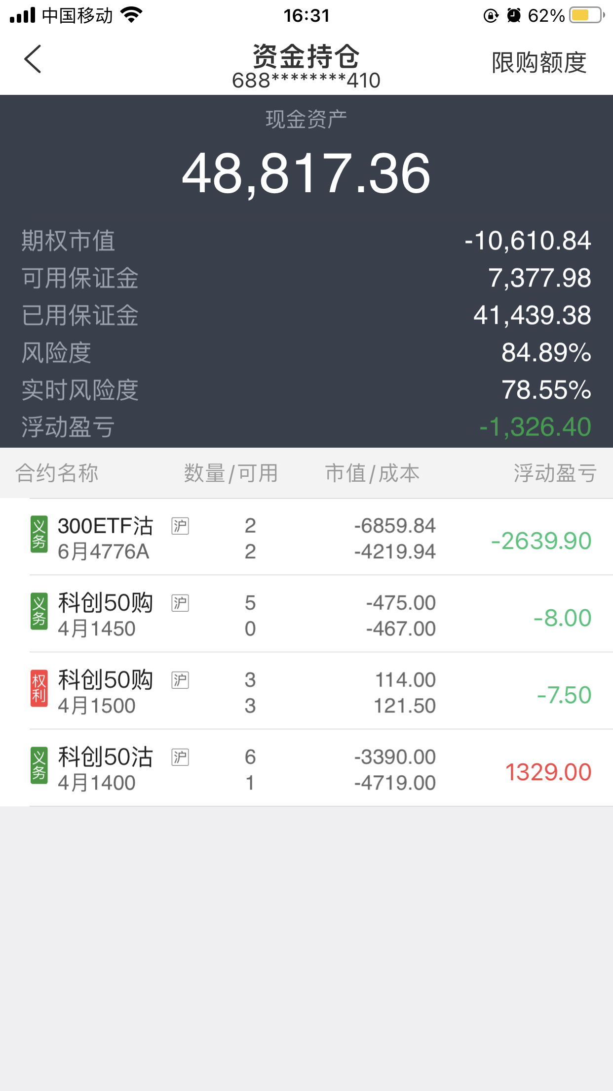 光阴荏苒又一年,过去的2025年是妥妥的股市牛年:在这一年里,自己的股票账户在大幅回血,全年收益率竟然有54.56%,这是2025年1月份的时候想都不敢想的事情,也正是有占资金总量50%的股票账户这一年来的大幅回血,才弥补了期权账户严重落后指数收益的失落感。期权这一年,虽然收益率为4.58%,但主要是得益于全年指数牛市的功劳,这一丁点的收益率,就像集友对我说的那样,风险是银行存款的几十倍,牛市没吃饱,熊市要难熬。确实,风险和收益是完全不成正比的,在牛市里面,股市新手的收益率都能拉自己几条街的距离,更何况是带了高杠杆的期权市场。在年终收益率面前,虽然不亏,但也想过自己是否真不适合在这个市场里面,但心底里那个倔强的自己很快就打翻了这个念想,不打完最后一个铜板就绝不收兵!这几年30%资金总量的期权账户也已经亏到只剩裤衩了,大不了光屁股走人!总结!尽量做跟自己期权账户资金匹配的期权策略,有剩余资金方便在风险来临时做好腾挪和对冲,策略再好,也要掂量自己有没有这个资金实力。提高!还是要多学习,多看书,多请教,不能自己去感动自己,脚踏实地,认清自己的本事,踏踏实实、不急不躁,慢就是快。再出发!2026年,健康永远是第一位的财富,没有好的身体,是无法在变幻莫测、暗流涌动的市场里支撑下去的。在市场中,时刻提醒自己,心中有敬畏,眼中有清醒,脚下有准备;守住本心、稳住节奏以求行稳致远。最后,感谢一路同行不忘忙中指点的各位集友和老师,也祝愿各位集友在新的一年里平安健康,账户长红,马到成功!