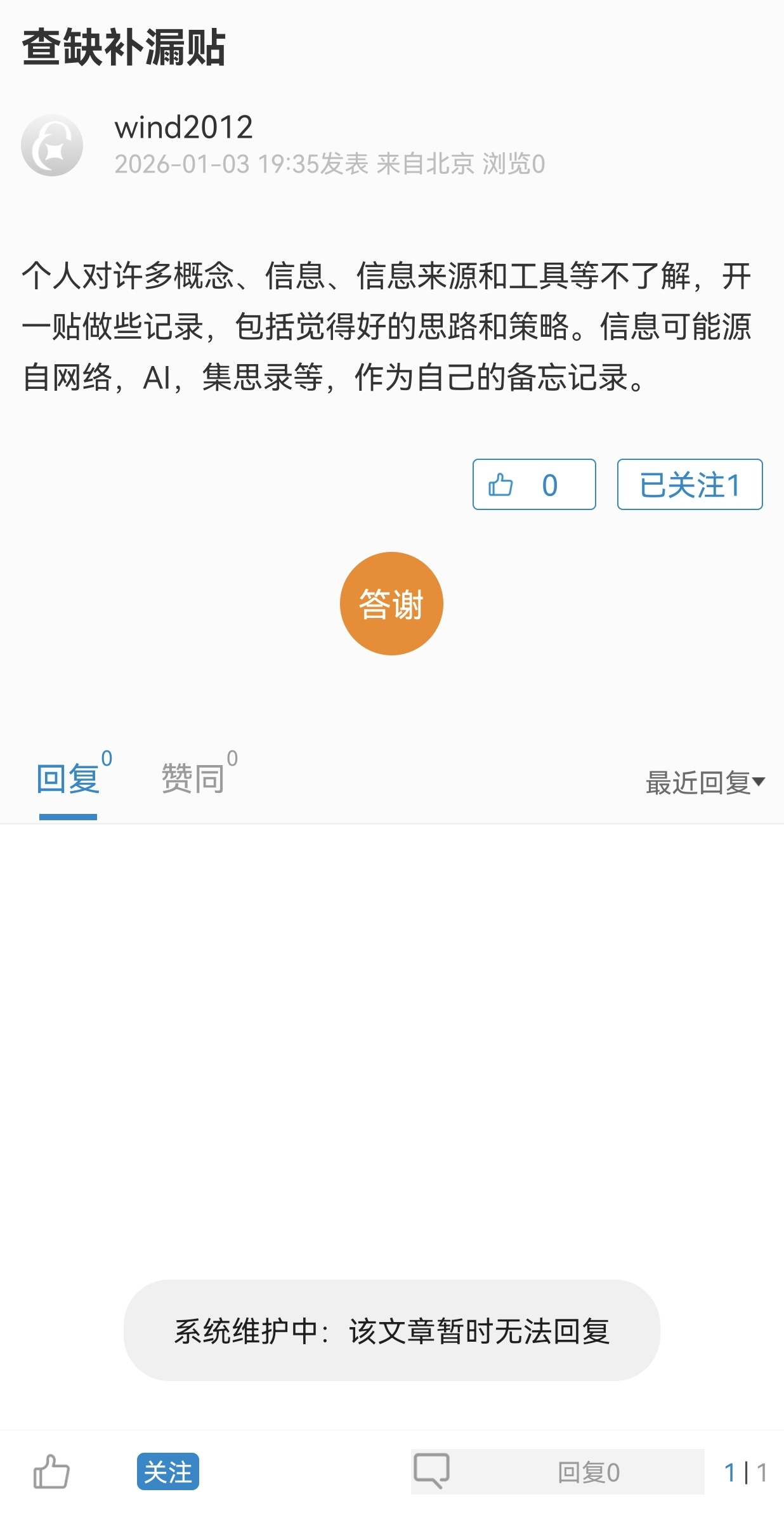 新开一“查缺补漏贴”,是因为需要审核还是什么原因,提示不能回复。