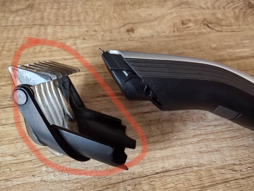 看下图,第1个图的红圈里就是可调整长度的卡套,第2个图就是套上卡套以后的样子,其中红圈里显示的是调整理发的长度,绿圈就是调整长度的地方。现在中国是世界第一制造大国,中国出产的电推子有更丰富的选择,随便买一个类似的就可以了,还更便宜,我为了给我家小孩理发还买过一个小孩用的电推子,又静音又便宜。
