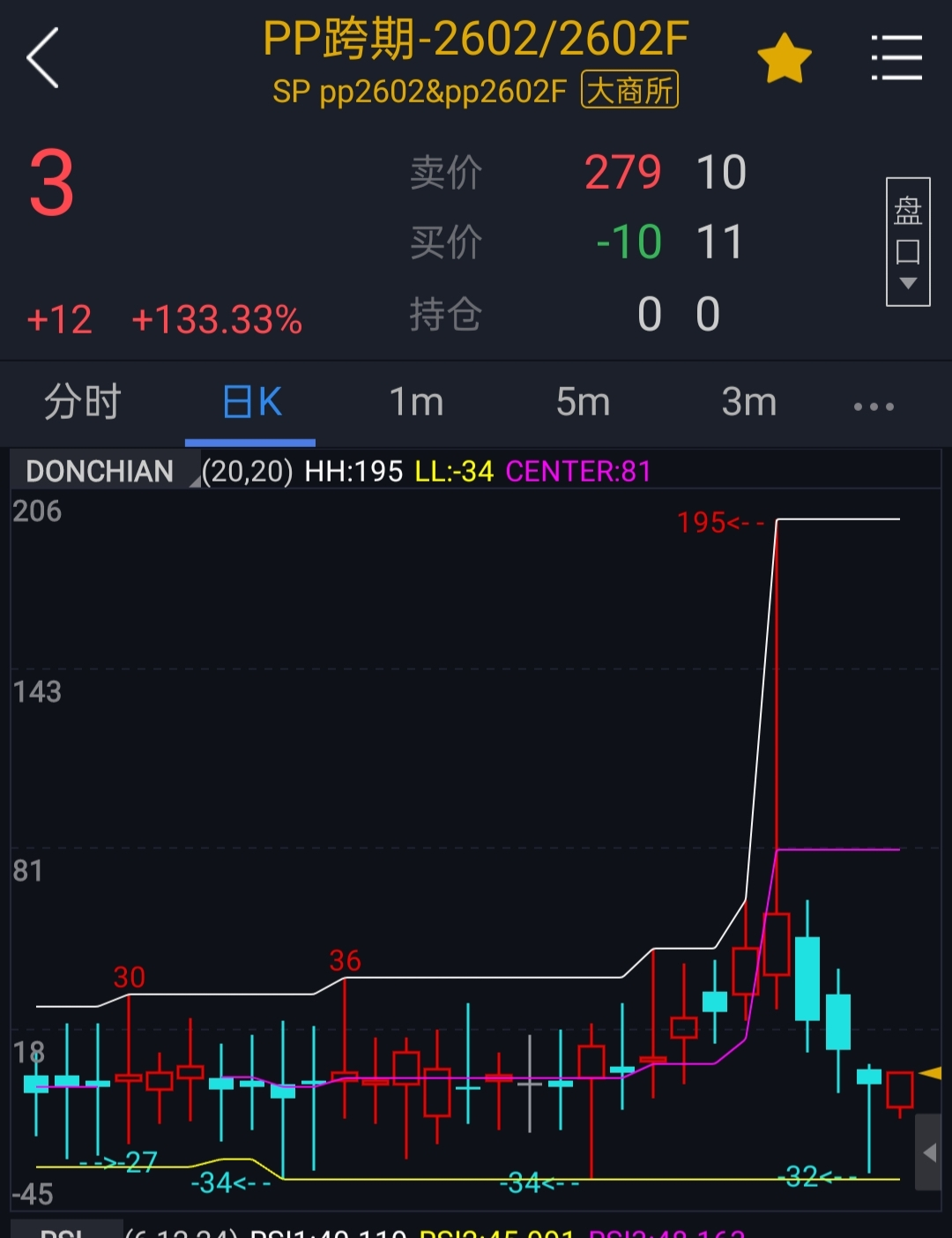 Day2,以v为首l、pp皆大涨,理论上602-602F价差该拉大,确实有反应慢的套利机会:602涨100点,套利+2点?!用套利指令滑点小,但不一定及时反应真实价差。自己构造,灵活及时/变数大。