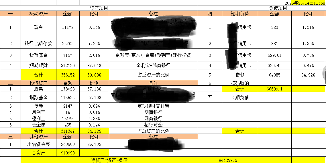 你这张Excel表是手工统计的结果么?我以前用Excel表记账搞了几年,实在太累了,每次要人工处理大量数据,还容易出错。为了省时间后来我基于SQL开发了个记账软件,只要把各个账户的明细交易全部导进去,SQL数据库就能自动统计任一个时间点上的资产分布情况,还能计算任一个时间段里的收益率。至于某一只基金的资产随时间变化情况,在已有的视图上写一个SQL查询也可以获取到。