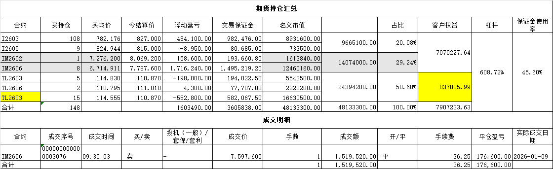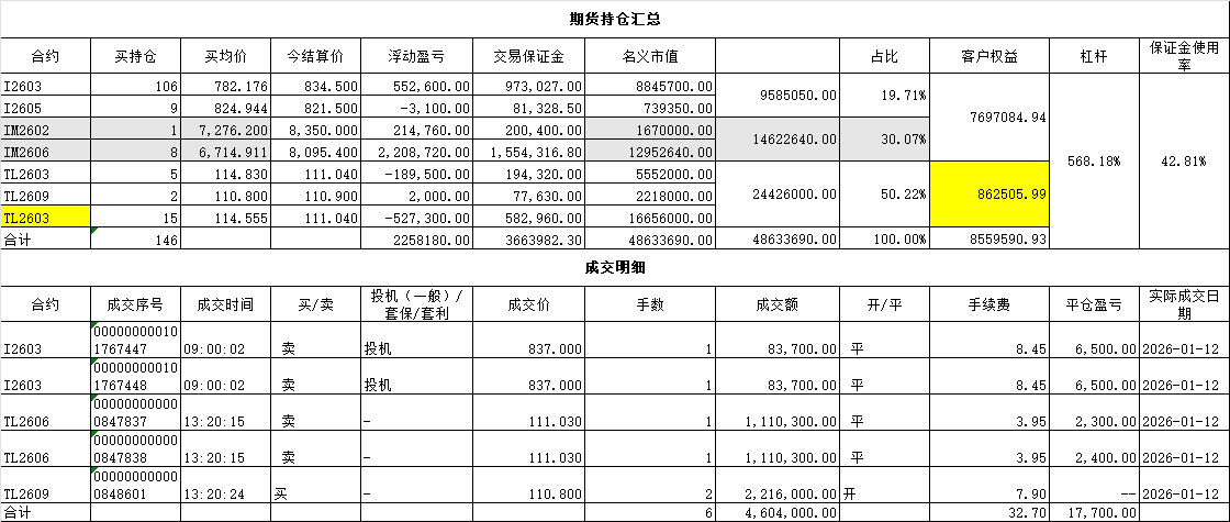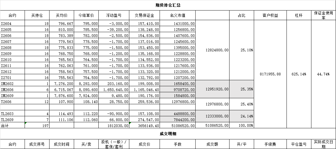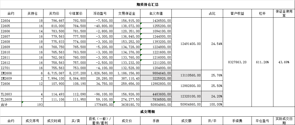 把铁矿石、IM的比例调为各占25%的名义市值,并逐渐增加十年债期货,目标是I、IM、T、TL各占25%。