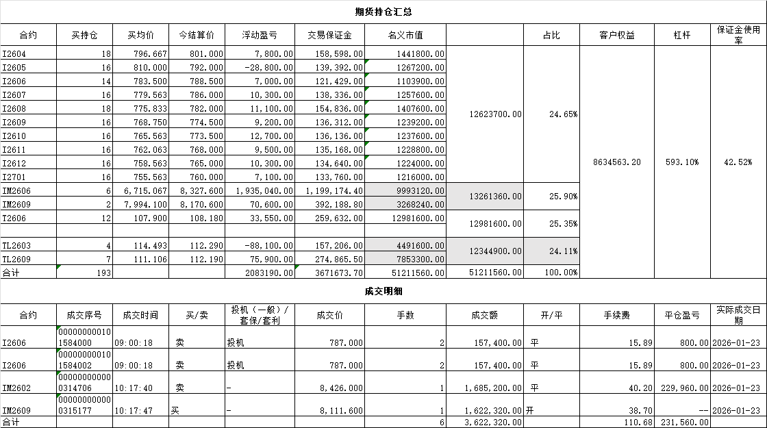 结算后,市值7426785.42,比昨天多了20+,今年新高,保证金使用率今年首次低于50%。