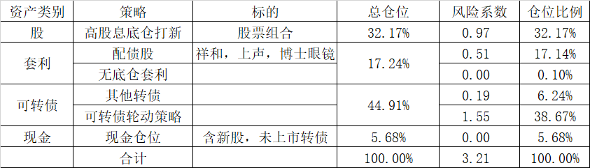 套利贡献收益率2.75%;指数基金类贡献1.3%;转债轮动贡献2.8%;配债股贡献2.7%;