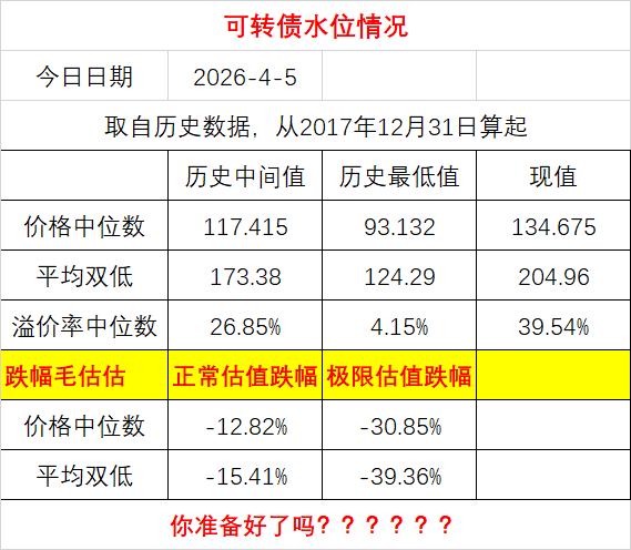 离4月底刚好一周时间,这一周时间会有大量公司交卷,业绩雷集中释放,大盘连续几个跳空缺口,A股的尿性个人更倾向于大概率A下去的可能性。希望给我大幅建仓可转债策略的机会。