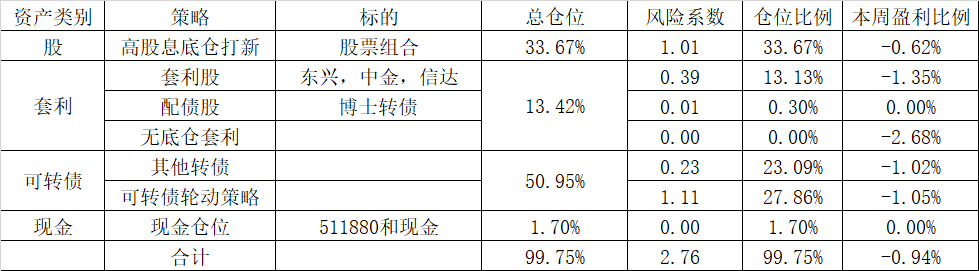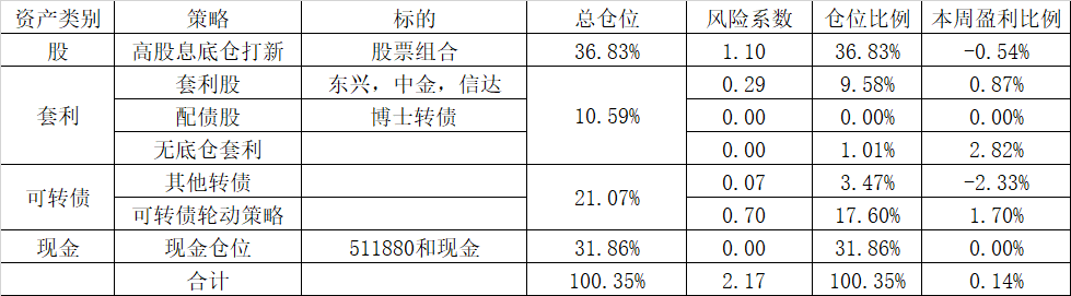 总体维持目前仓位,总体32%类现金仓位,进可攻退可守。