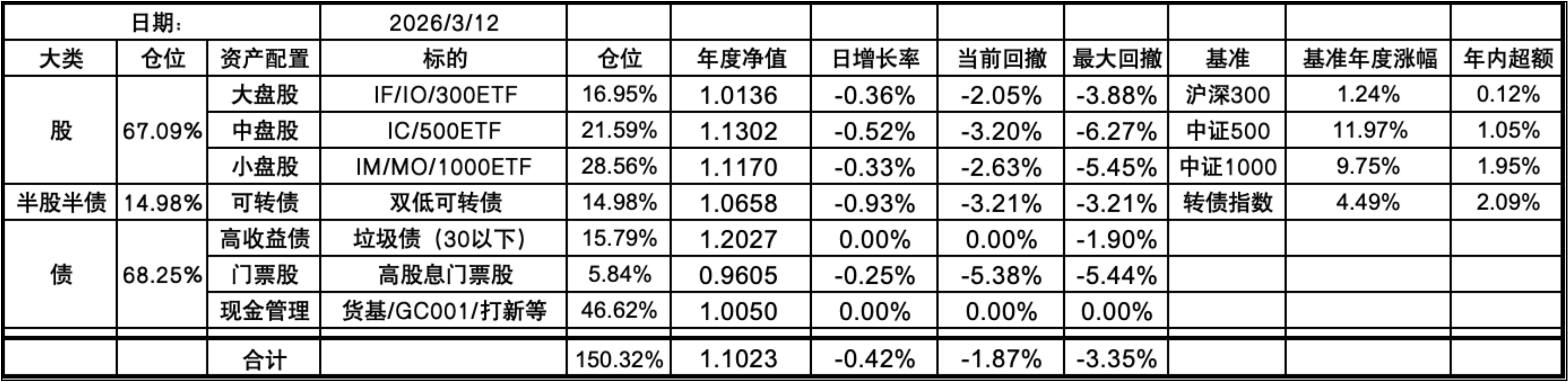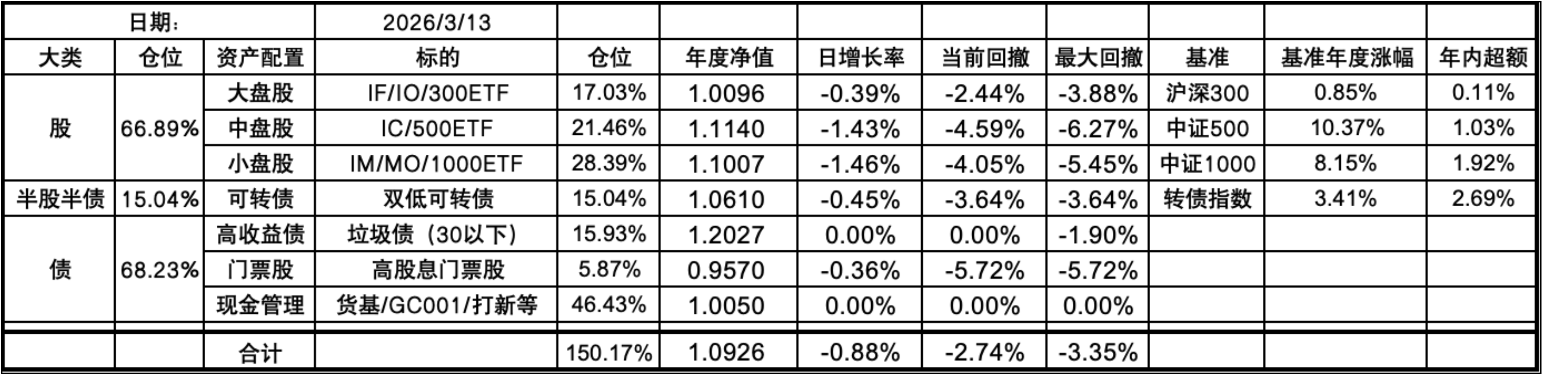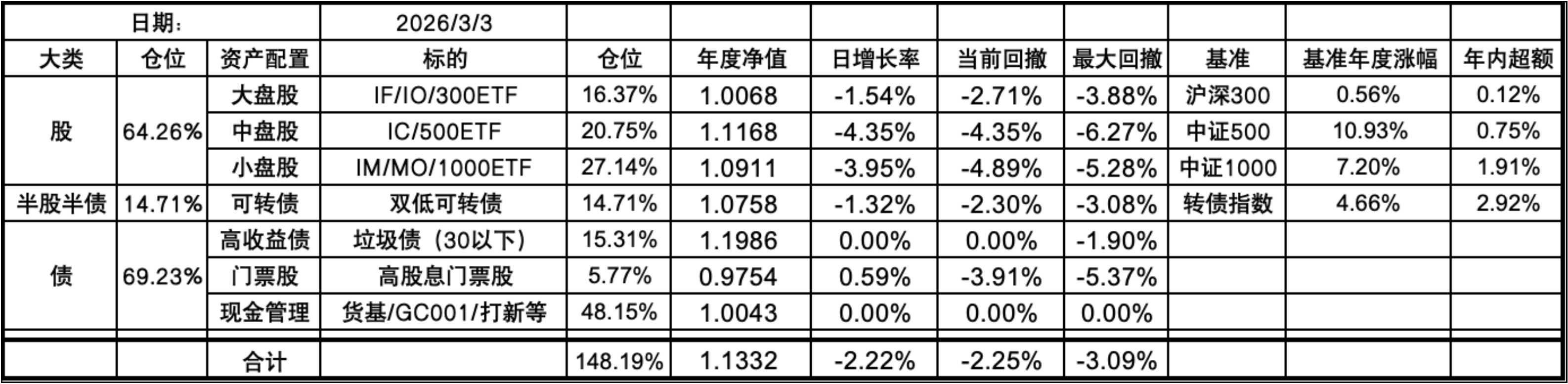 今天的最高点出现在了2月27日。目前依然回撤1.87%。之后的总净值应该就是准确的了。其实应该更早发现这个问题,分项净值对的情况下,结合仓位目前总净值不可能增长16%左右,毕竟超过这个数的分项也暂时只有垃圾债。实在抱歉!