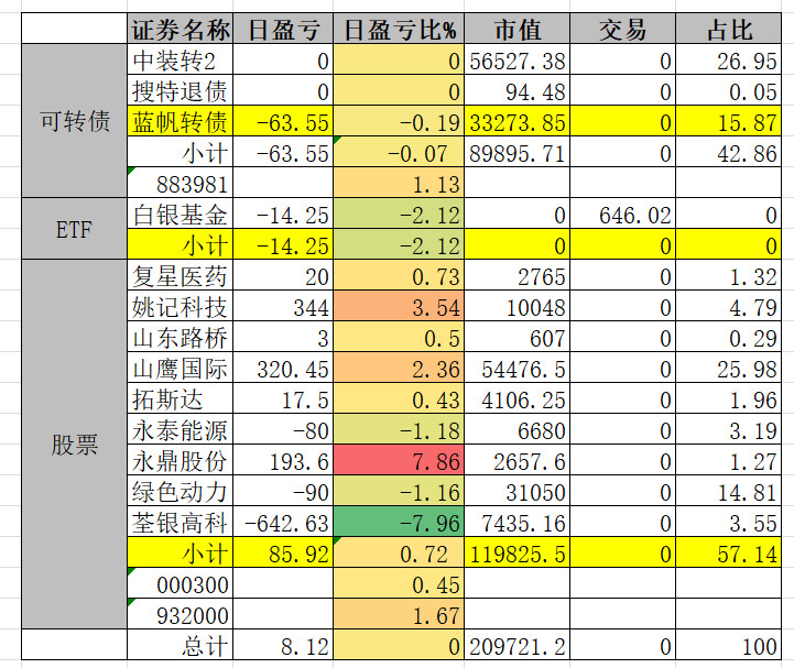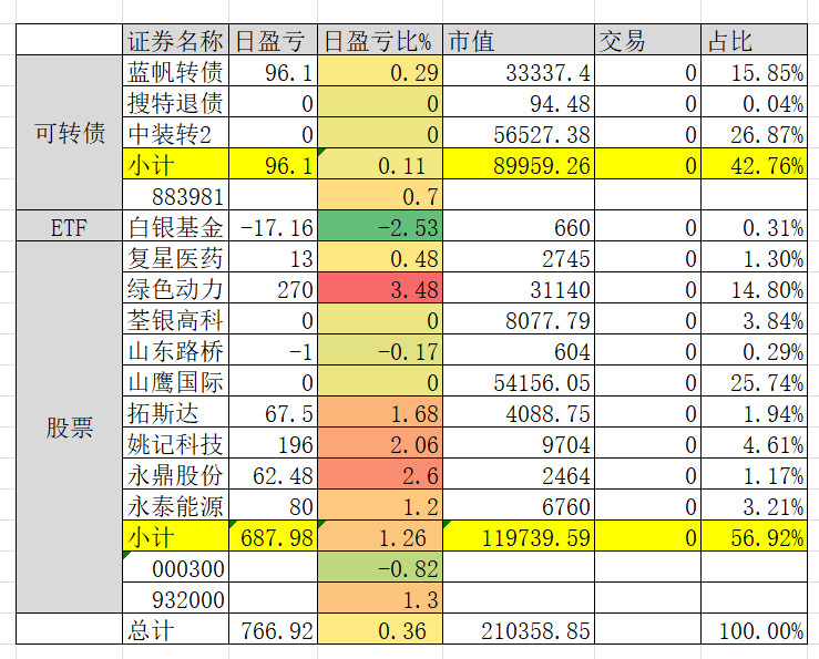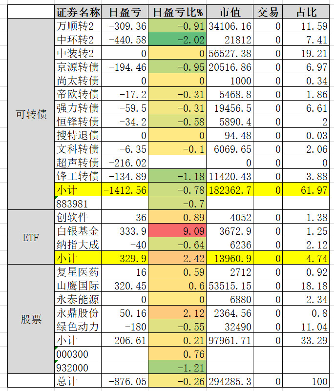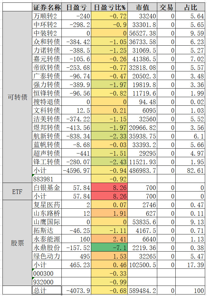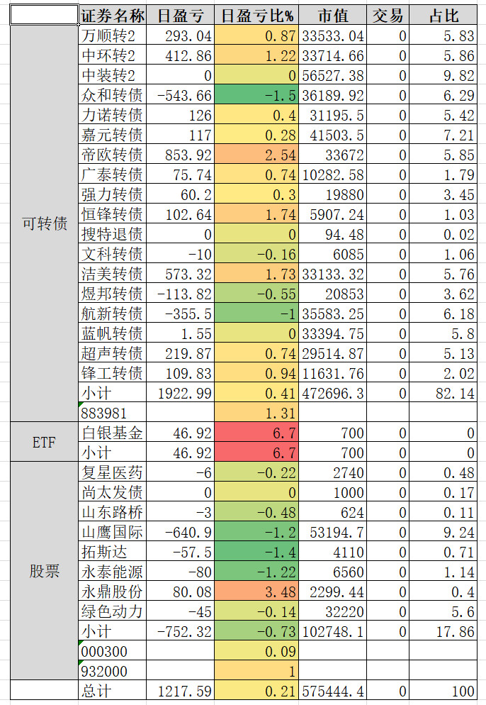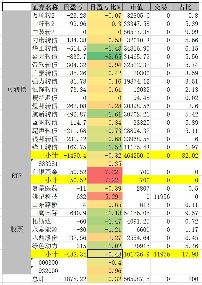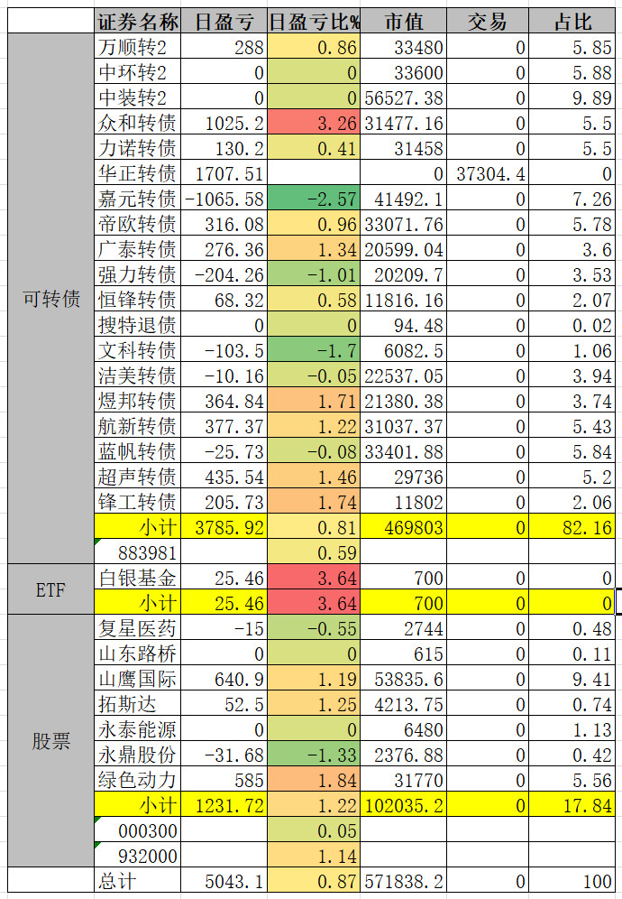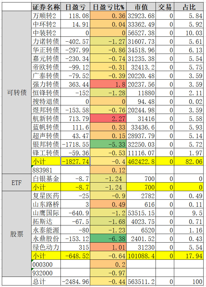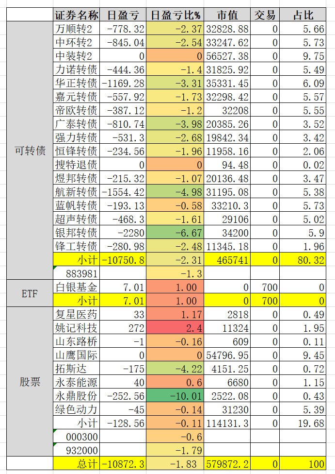 因为组合中买了三支商业航天概念的转债,连续三天是止不住的跌。明天看情况补点仓。