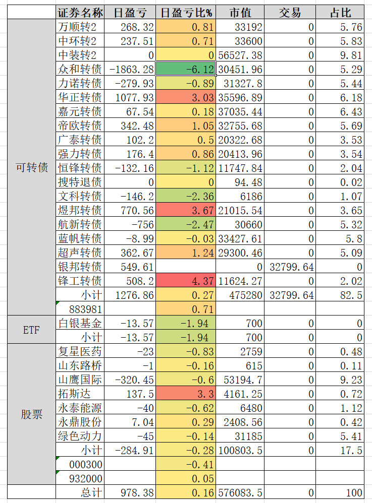 2026.1.16实盘 众和转债跌的有点妖