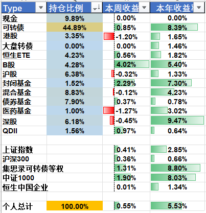 今年仍然以转债为主,辅以港股和银行股;B股和医药股去年比较拉跨,今年可以再关注下,是否有补涨机会;