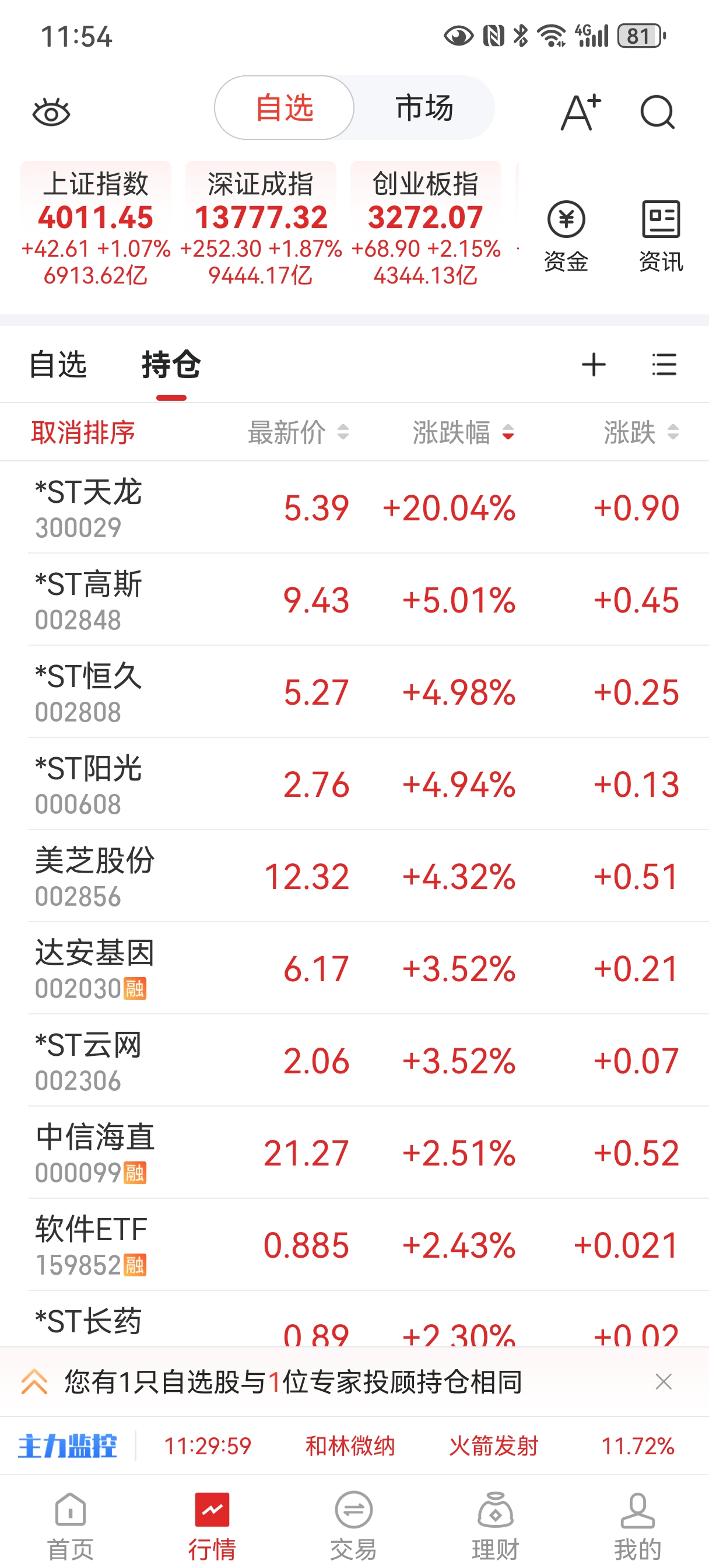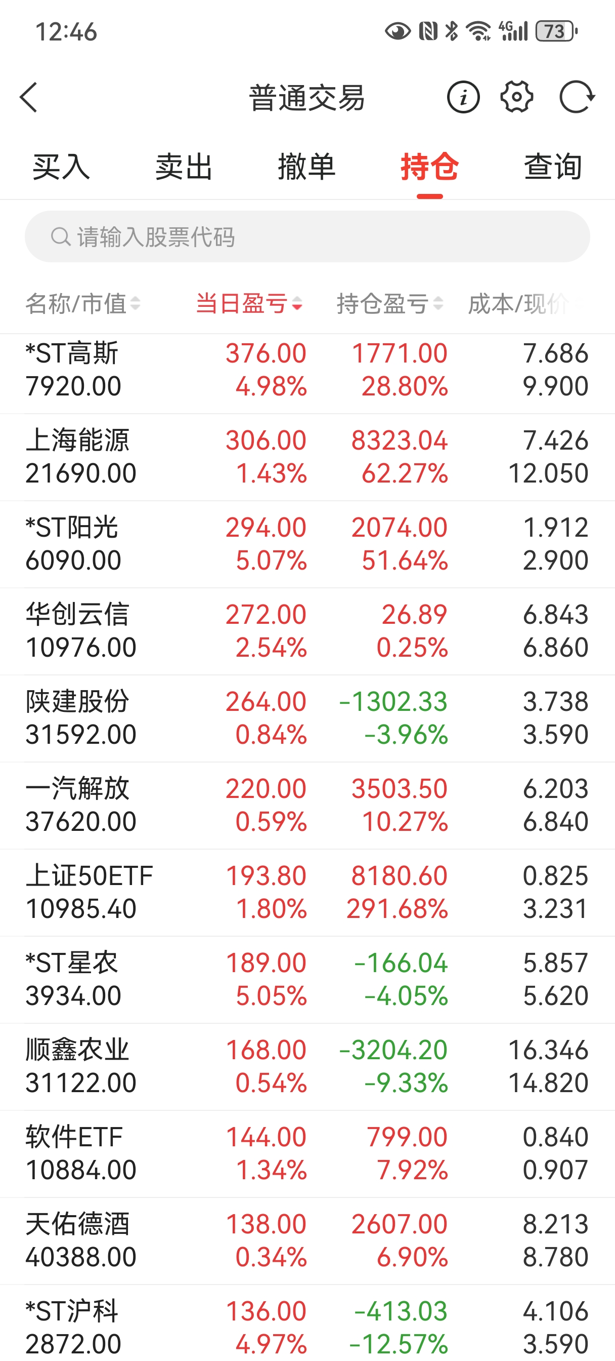 2026年第5、6、7、8个涨停,st星农、st高斯、st沪科、st阳光截图留影纪念!