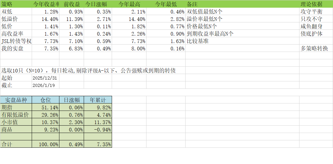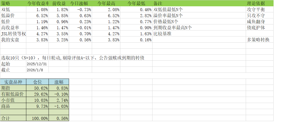 举例:某转债价格 105 元(低价),但转股溢价率 50%(高溢价),短期难涨,但跌不动;若正股突发利好或转债下修转股价,溢价率下降,价格可能快速反弹。 - 低收益率策略